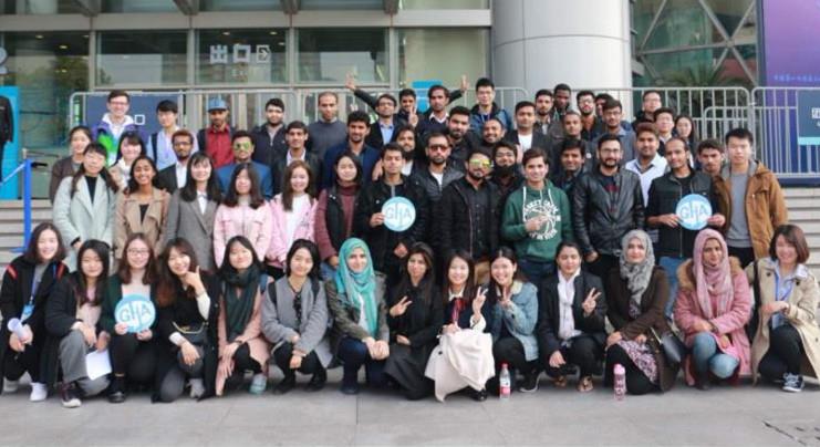 一大早,所有中国学生兵分两路。一队带领巴基斯坦学生前往科技馆,另一队前往延长校区,迎接老师和来自韩国、泰国、斯里兰卡、土耳其和尼日尔的6名语言生。上午九时,所有人员在科技馆门口集合完毕。