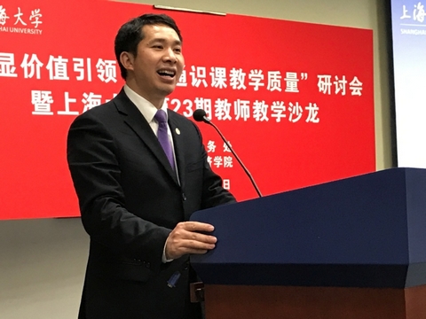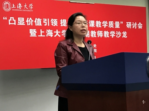 上海市思政课名师工作室“顾晓英工作室主持人”——顾晓英首先传达了高校思想政治工作会议精神,结合教育部、上海市教委和德赢ac米兰官方合作vwin工作要点,介绍教务处推行课程思政的运行方案,强调价值引领的重要性。她结合德赢ac米兰官方合作vwin多年来的思政工作创新历程,小结了德赢ac米兰官方合作vwin思政课教学改革成果,分享了德赢ac米兰官方合作vwin以“大国方略”系列课程为代表的率先探路“课程思政”创新实践,提出下一阶段通识教育课程体系完善及教学质量提升的思路。
