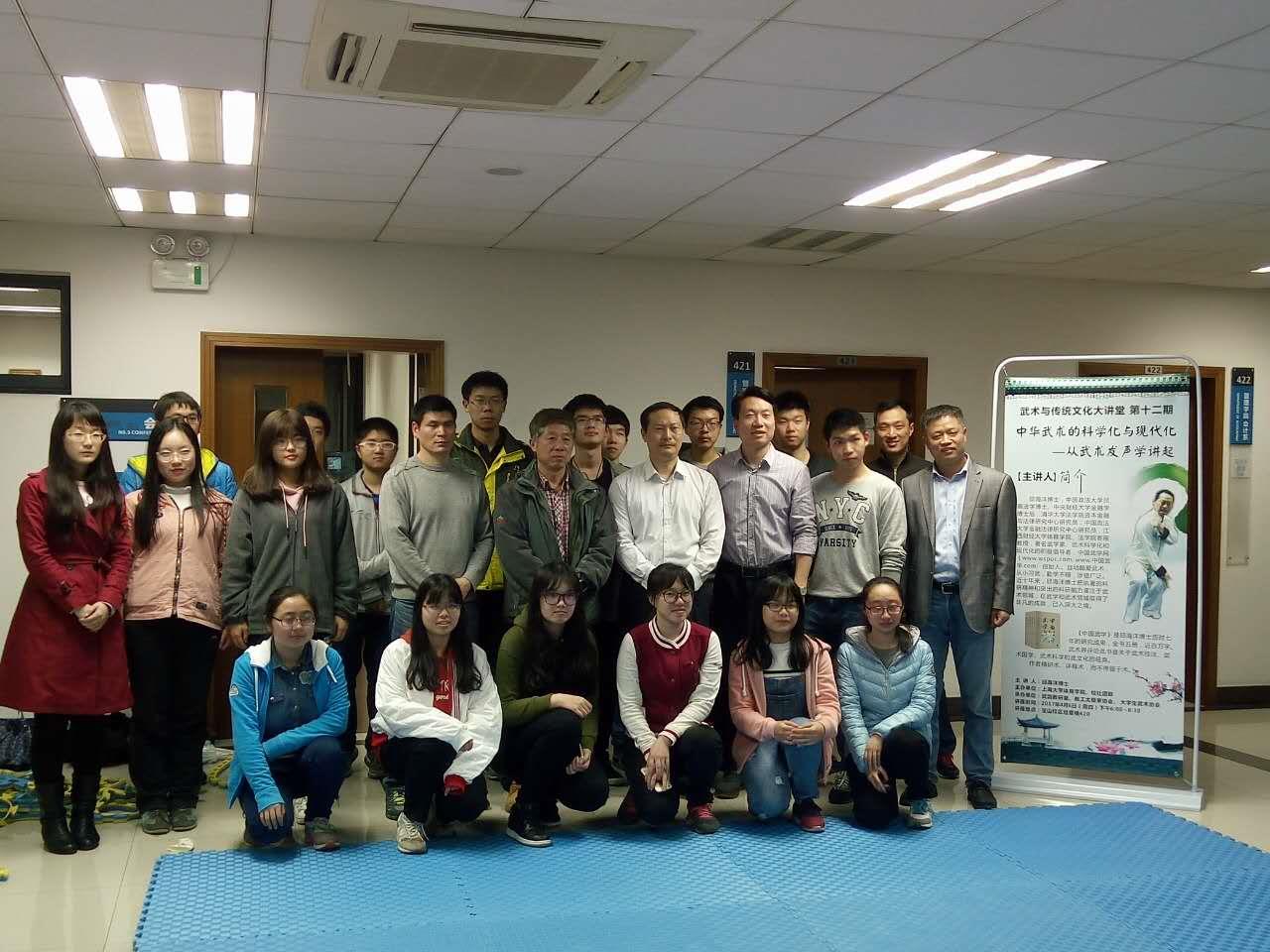 接着,邱博士从武术的三层境界论阐述了自己对中华武术的科学化与现代化的观点。他认为,习练武术应有三层境界:第一层,是意识感知身体,意识支配身体,只有准确感知身体,才能灵活运用身体,完成预想的动作,进而在搏斗中感知对手的身体;第二层,是意识感知时空,身体善用时空,因为作为一种运动,武术是在特定的时空中进行的,所以习练武术,必须很好的感知空间和时间,理解时空之间的关系;第三层是意识感知意识,意识引领意识,功夫修炼的高级阶段是修炼意识对意识的感知和控制。邱博士是武术科学化和现代化的积极倡导者,他认为任何一种武术都不能涵盖或擅长踢、打、摔、拿等所有的技法,而实现传统武术的现代化,就是要融合各家之长形成一个新的武学实战体系,而这一点对德赢官网正在开展的武术教学改革和学生“个性化”的培养体系的建立都是非常有借鉴意义的。