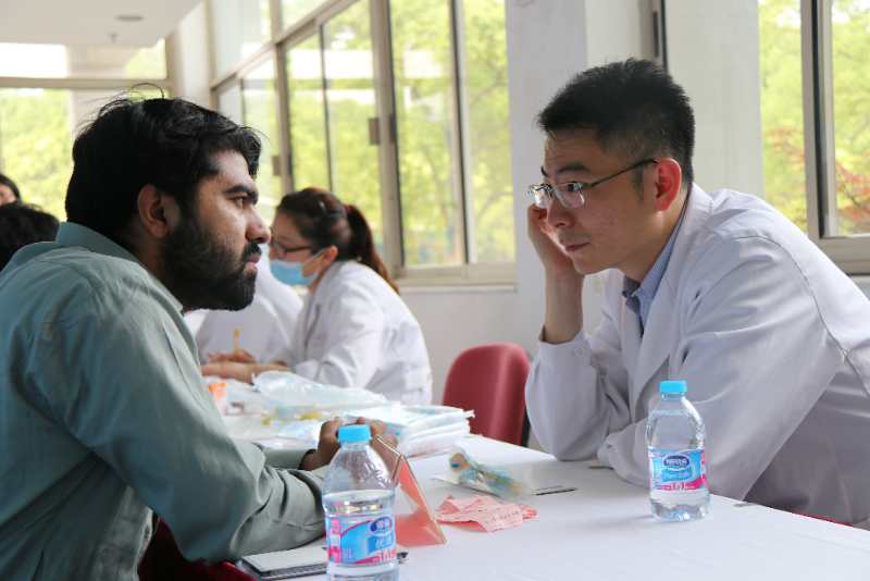 现场义诊环节,4位口腔科专家为30余名德赢ac米兰官方合作vwin的中外师生、教工家属进行了一对一的看诊、咨询服务,不少教工特意带着孩子前来咨询。他们说平时工作繁忙、孩子上学,想要去医院就诊都排不出时间,挂号也困难,这次学校为师生们谋福利,邀请了极富盛名的十院口腔科专家来校义诊,机会难得,所以带着孩子一起来检查咨询,保护口腔健康也要从娃娃抓起。现场还有几位留学生也闻讯而来,张以鸣医生用熟练的英语回答了他们的疑问,同时也传授了许多保健知识,留学生们连声道谢。