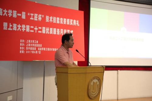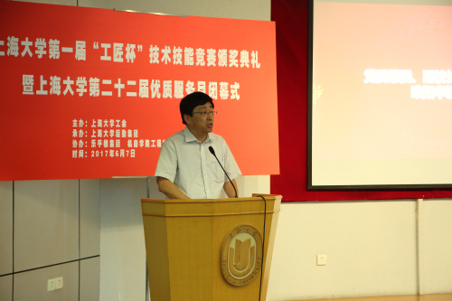 6月7日下午,德赢ac米兰官方合作vwin第一届“工匠杯”技术技能竞赛颁奖典礼暨德赢ac米兰官方合作vwin第二十二届优质服务月闭幕式在宝山校区行政楼报告厅举行。