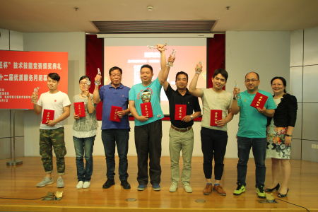 随后,工会常务副主席顾红宣读了《关于表彰德赢ac米兰官方合作vwin第一届“工匠杯”技术技能竞赛获奖人员的决定》,沈国峰等14人获技术技能竞赛第一名,邱志勇等18人获第二名,韦丽等22人获第三名,总计54名选手获奖。德赢ac米兰官方合作vwin党委常委、副校长、工会主席欧阳华、上海市教育工会常委、基层工作部部长、上海市教育系统妇工委副主任张芳、上海市学校后勤协会专职副秘书长董种德、校党委宣传部部长李坚、校工会副主席吕晓军、校党政办副主任孟祥栋分别为技术技能竞赛的一、二、三名获奖者颁奖,顾红为获得突出贡献奖的集体和个人颁奖。后勤集团获得本届技术技能竞赛的突出贡献奖(集体)称号,谭梅等7人获得突出贡献奖(个人)称号。