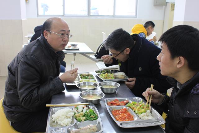 今年寒假,共有300多名本科学生因参与挑战杯项目、美国数模竞赛、与导师一同参与科研、实习实践等原因留校,其中有三十多名学生将留校过年,他们的学习生活情况一直牵挂着学校领导的心。罗宏杰书记、金东寒校长本周专门看望了相关部门假期值班同志,特别就做好留校学生工作提出了明确要求。 新春佳节到来之前,受罗书记和金校长委托,25日,校党委副书记、副校长徐旭与学工委相关部处负责人、部分学院分管书记一行,先后走访了学生宿舍、食堂等地,看望了留校学生代表和后勤保障人员,送去冬日的“温暖”。“寝室冷不冷?家是哪里的?打算什么时候回家?”在学生宿舍,徐旭详细询问了学生留校期间的生活学习情况,对他们留校勤学励志表示赞许,并叮嘱学生在校期间注意自身安全,要和家长、辅导员保持联系。最后,他代表学校党委和行政,祝同学们春节快乐,并请带回学校对学生家人的问候与祝福。在益新一楼值班餐厅,徐旭详细了解了餐厅的供应和营业情况,赞许为留校学生的热饭热菜供应,并与在食堂用餐的学生亲切交流。