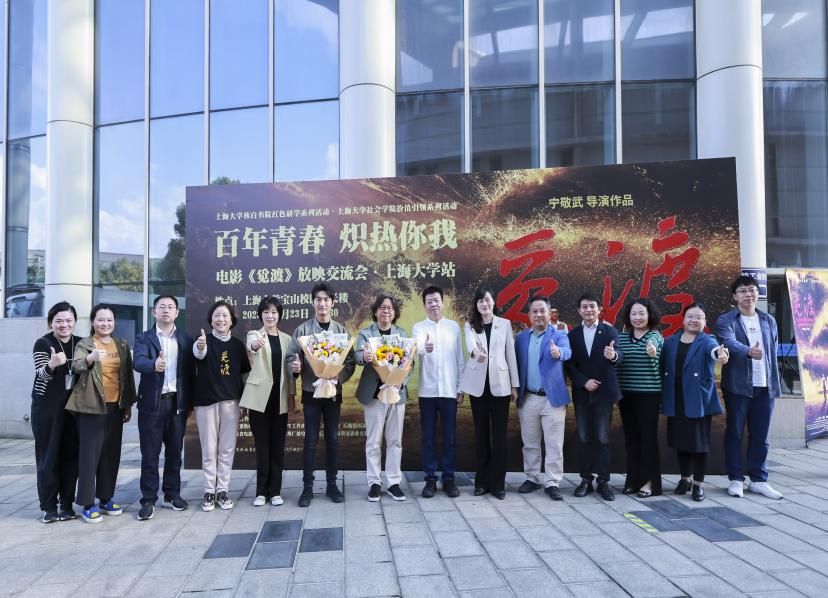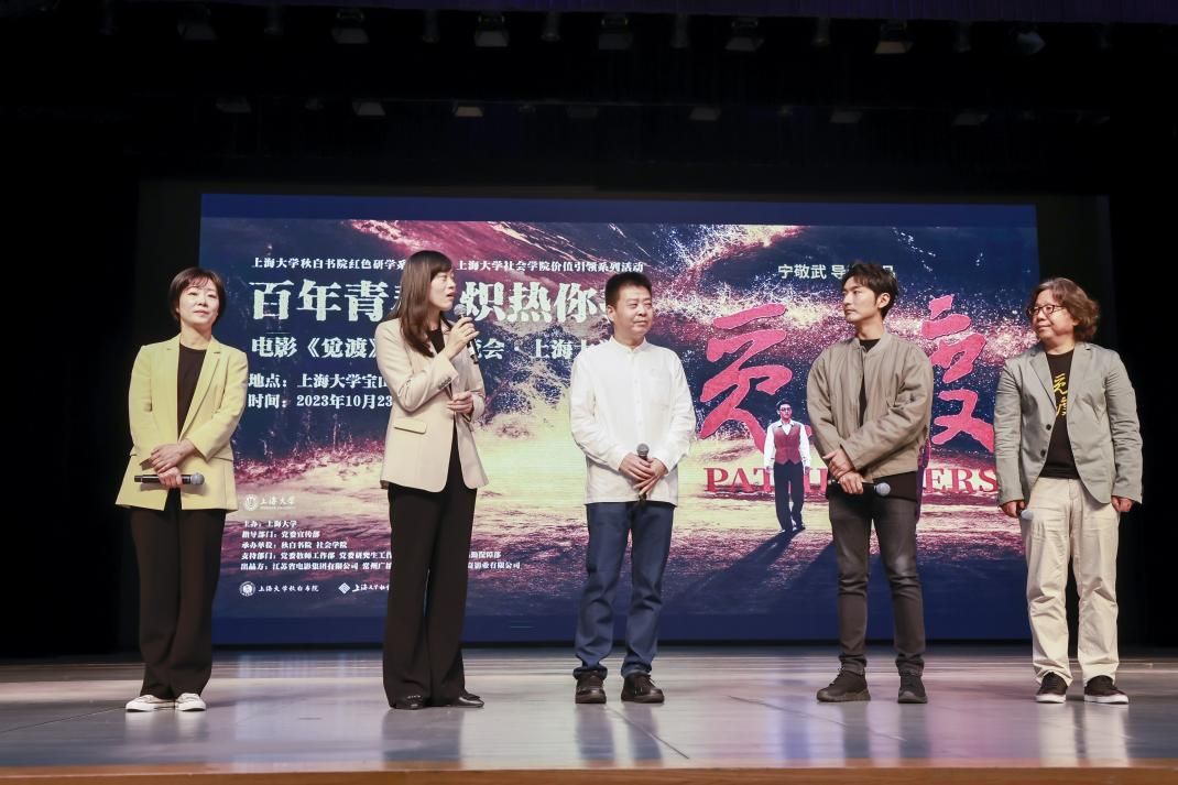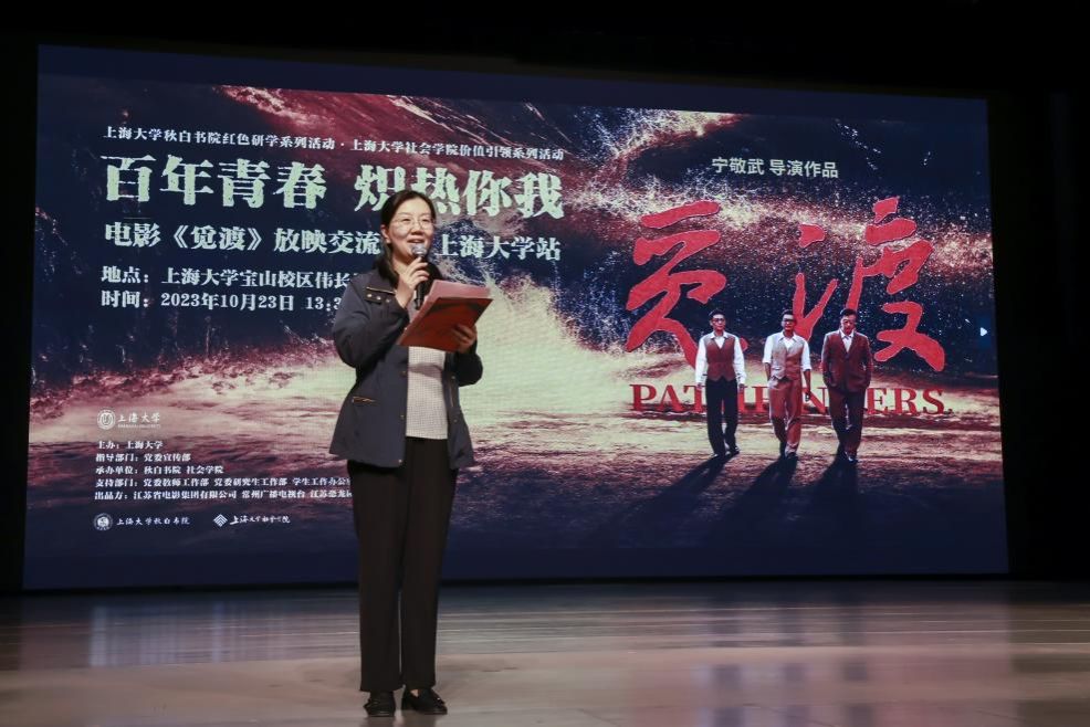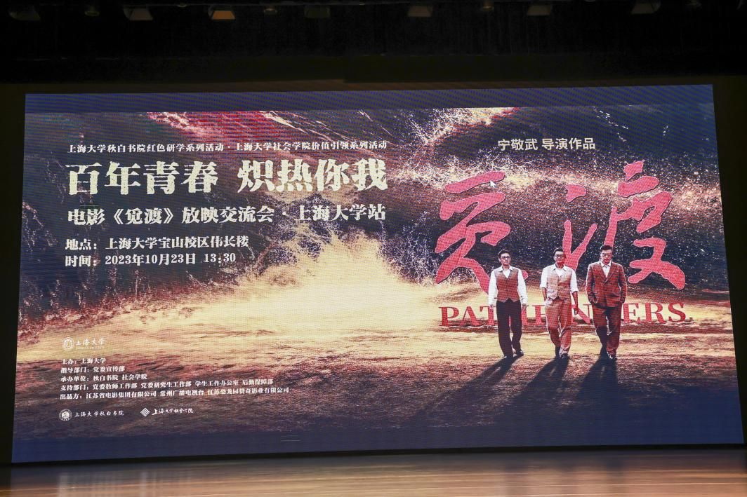觅光明,见信仰,为国家。今年是瞿秋白同志翻译传唱《国际歌》100周年,也是恽代英、张太雷同志创办《中国青年》杂志100周年和德赢ac米兰官方合作vwin建校101周年。2023年10月23日下午,由德赢ac米兰官方合作vwin党委宣传部指导,秋白书院、社会学院承办的以“百年青春,炽热你我”为主题的重大革命历史题材电影《觅渡》放映交流会在德赢ac米兰官方合作vwin宝山校区伟长楼顺利举行。出席此次活动的领导嘉宾有德赢ac米兰官方合作vwin党委常委、组织人事部常务副部长、组织处处长沈艺,《觅渡》导演宁敬武,《觅渡》主演宋洋,《觅渡》总制片人、江苏恐龙园赞奇影业有限公司总经理沈爱华,瞿秋白亲属侄孙女、上海民办华二初级中学校长瞿平,瞿秋白亲属外甥孙、德赢ac米兰官方合作vwin中文系93届校友王海,常州三杰纪念馆党支部书记、馆长马岚,常州三杰纪念馆副馆长唐茹玉,德赢ac米兰官方合作vwin后勤保障部党委书记李坚,德赢ac米兰官方合作vwin对外联络处处长、校友会办公室主任陈然,德赢ac米兰官方合作vwin党委宣传部副部长、融媒体中心主任吴铭,德赢ac米兰官方合作vwin社会学院党委书记杨锃,德赢ac米兰官方合作vwin各部处和兄弟院系领导老师及学生代表、离退休教师代表、校友代表、社会学院全体党员师生,电影《觅渡》主创团队成员和媒体代表等近千名观众共同参与。活动由德赢ac米兰官方合作vwin新闻传播学院研究生郑鲁川主持。