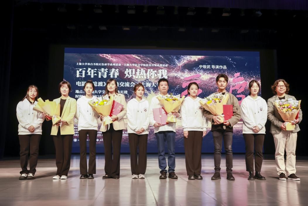 为了传承和弘扬红色校史,赓续红色基因,德赢ac米兰官方合作vwin前期成立了以瞿秋白先辈命名的秋白书院、秋白支部。现场,社会学院党委书记杨锃老师,秋白书院执行院长、社会学院党委副书记、副院长张乃琴老师为宁敬武导演、宋洋先生、王海先生、马岚女士、唐茹玉女士颁发秋白书院校外导师聘书,期待几位嘉宾未来能走进书院,将秋白精神传递给更多书院学子。社会学院秋白党支部学生党员为嘉宾献花,表达对电影《觅渡》主创团队的感谢。
