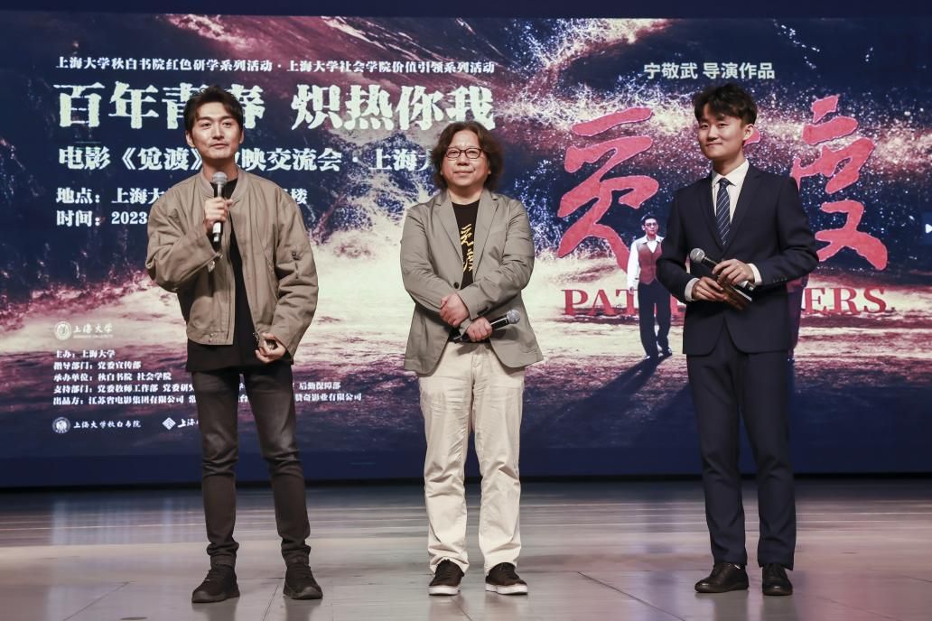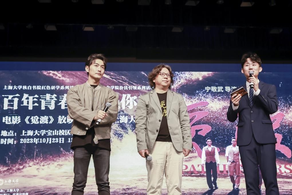 在主创交流环节,电影《觅渡》导演宁敬武先生以及影片中瞿秋白的扮演者宋洋先生也来到现场,向在座师生们分享创作感想。宁导从“100”和“101”这两个具有纪念意义的数字谈起,“100”指的是100年前瞿秋白先生回国来到了德赢ac米兰官方合作vwin担任社会学系主任,而100年后我们带着这部影片来到了德赢ac米兰官方合作vwin。“101”指的是今年是德赢ac米兰官方合作vwin建校101周年,恰逢瞿秋白、张太雷、恽代英三个人的年龄加起来是101岁,他们是永远的青年。“我们今天将这部影片带给大家,也是希望现在的年轻观众能够真正读懂他们。”