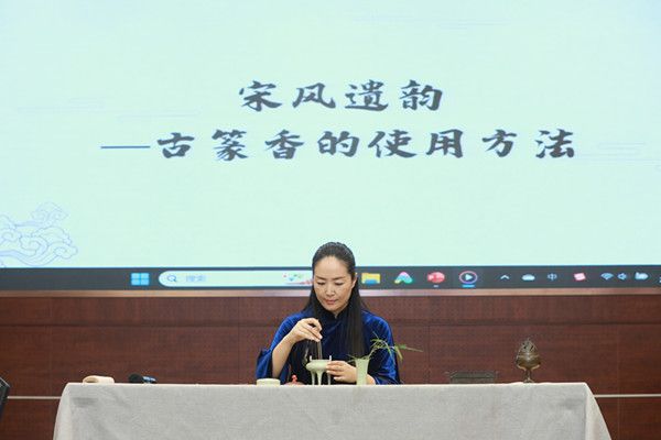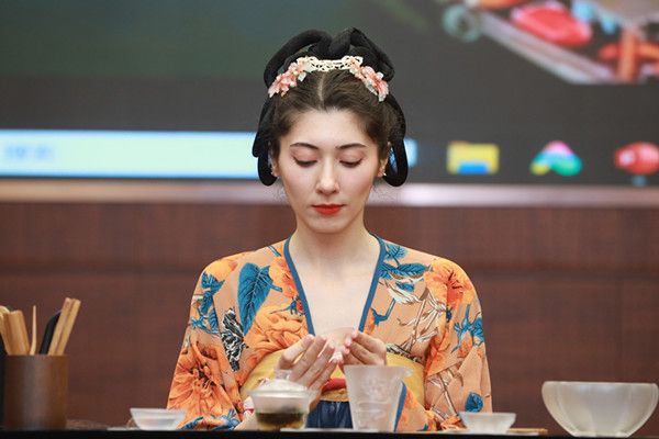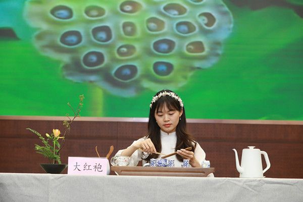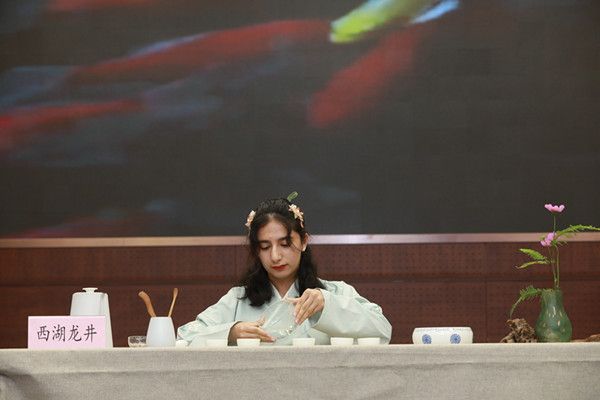 茶会活动中安排了丰富多彩的文艺表演,德赢官网来自俄罗斯、越南和阿塞拜疆的国际留学生身着汉服进行了红茶(正山小种)、乌龙茶(大红袍)以及绿茶(西湖龙井)的茶艺表演,典雅的音乐,清新的背景,伴随着茶香,使茶会氛围更加古韵悠长。本次活动还邀请了青年琉璃艺术家郑珊珊介绍琉璃茶器,非遗传承人高晴介绍中国香道以及非遗传承人王薇介绍中国插花。最后由崔希亮教授的书法展示“茶和世界”将本场活动推向高潮。