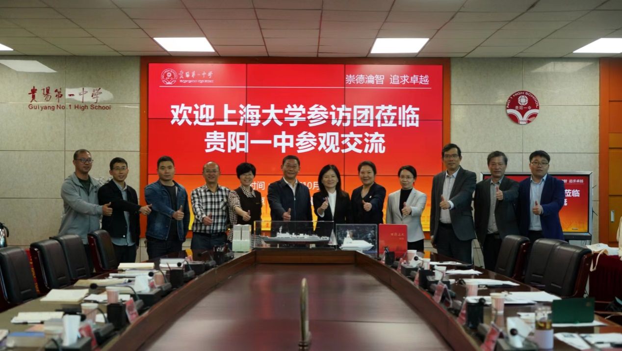 随后,聂清副校长率队赴贵州高中名校贵阳一中考察交流,贵阳一中党委书记陈章义、副校长谭美金等热情接待并进行座谈交流。座谈会上,双方就近年来贵阳一中学子考取德赢ac米兰官方合作vwin的情况以及在校学习发展和毕业去向等进行了分享。近年来,德赢ac米兰官方合作vwin录取贵阳一中学子每年均在20人以上,连续多年保持德赢ac米兰官方合作vwin在外省市录取人数最多高中的优势地位。聂清副校长与贵阳一中领导就新高考改革落地、双高接续人才培养等进行深入交流,双方一致表示未来继续加强多方位合作,为国家培养更多的栋梁之才。贵州招宣组(法学院)负责人对贵阳一中有关招生情况进行了介绍,钱伟长学院、未来技术学院负责人对各自学院的办院定位、人才培养特色等进行了深入展示。会上,聂清副校长代表德赢ac米兰官方合作vwin向贵阳一中赠送钱伟长船模型、无人艇模型和钱伟长文集等书籍,表达德赢ac米兰官方合作vwin与贵阳一中携手共育英才的诚挚期盼。