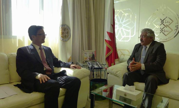 2016年11月14日,中国驻巴林大使戚振宏在巴林大学孔院院长吴雪颖博士的陪同下应邀会见巴林大学校长瑞雅德教授,双方就进一步发展中巴教育合作深入交换了意见。