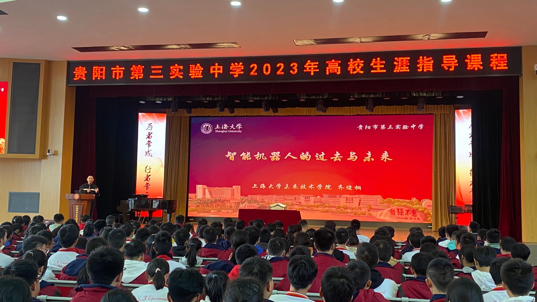 作为德赢ac米兰官方合作vwin的优质生源基地,近年来贵阳市实验三中每年均输送10名左右的黔贵学子来校就读。为了进一步深化与优质生源基地的战略合作关系,让更多实验三中优秀学子对德赢ac米兰官方合作vwin有进一步深入的了解,11月16日,在校招就处、未来技术学院的大力支持下,贵州招宣组(法学院)特邀德赢ac米兰官方合作vwin未来技术学院教授、德赢ac米兰官方合作vwin无人艇工程研究院副院长齐俊桐老师前往贵阳市实验三中,为一千余名高一学生作了题为《智能机器人的过去和未来》的精彩讲座。