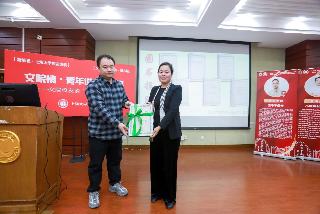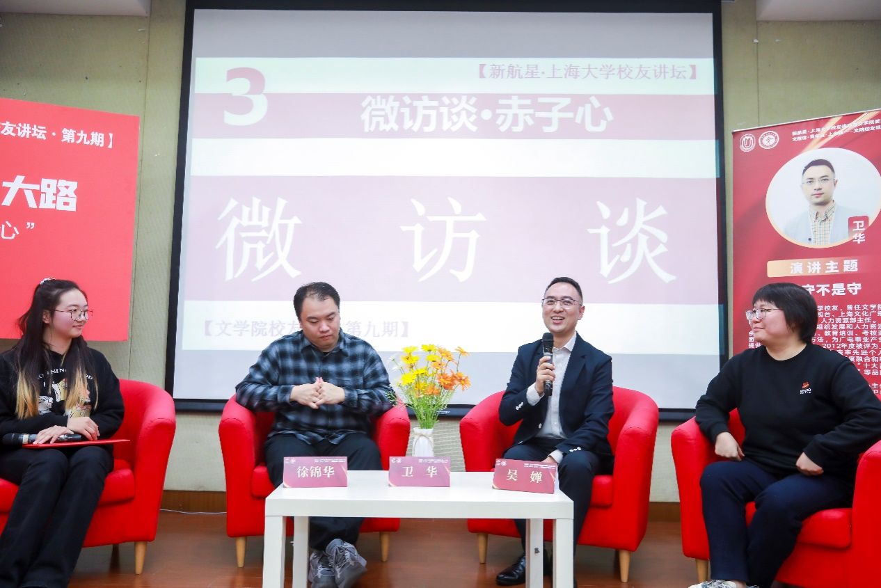 金秋时节,繁花似锦。为凝聚文院校友情谊,助力文院学子成长,11月19日下午,新航星·德赢ac米兰官方合作vwin校友讲谈暨文学院第九期校友讲坛,文院情·青年说·上大路——文院校友谈“不忘赤子心”在宝山校区东区蔡冠深讲堂顺利举行。