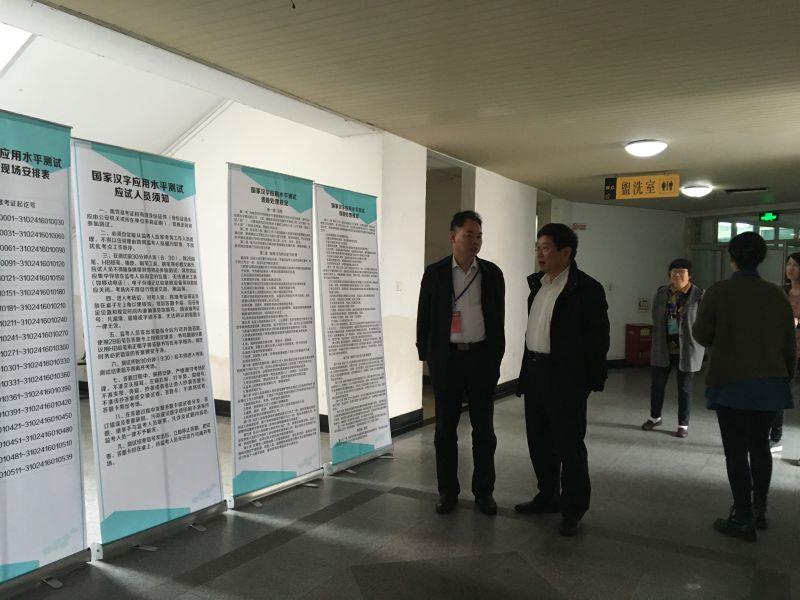 11月19日上午9:00,德赢ac米兰官方合作vwin2016年国家汉字应用水平测试在宝山校区教学C楼如期开考。全校539名师生报名参考;市语测中心徐民杰主任、校教务处彭章友处长等相关领导,亲临测试现场巡考指导。