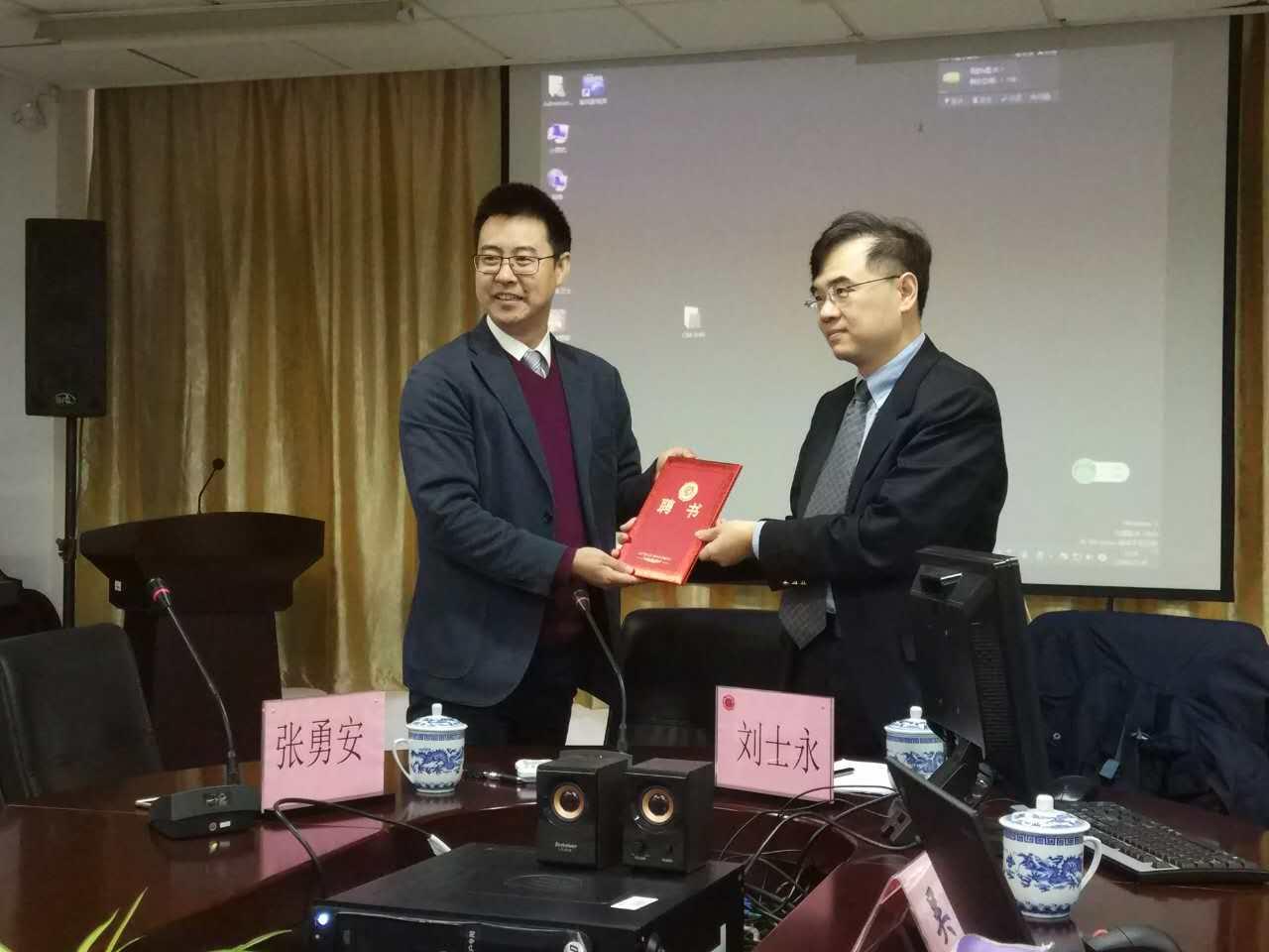 11月8日上午,台湾“中央研究院”研究员兼副所长刘士永教授担任德赢ac米兰官方合作vwin“自强教授”并冠名“德赢ac米兰官方合作vwin——浩清特聘讲座教授”聘任仪式在文学院举行,文学院常务副院长张勇安为刘教授颁发了聘书,历史系吴浩博士和与会众多硕士、博士生对刘士永教授加入德赢ac米兰官方合作vwin表示了热烈欢迎。