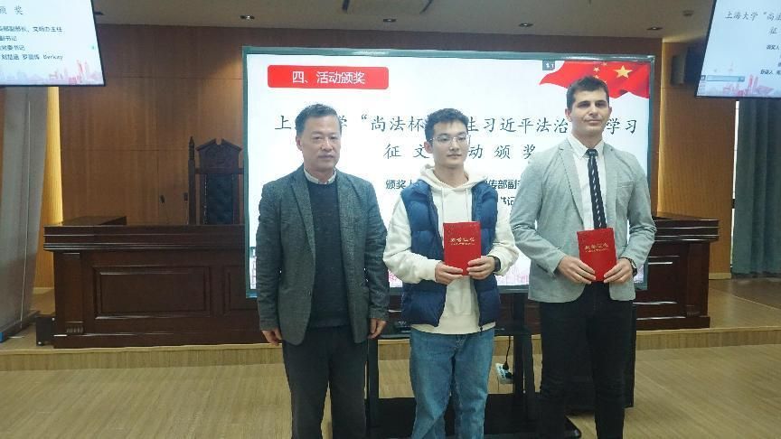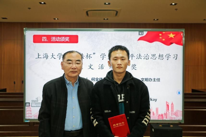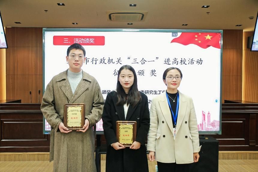 为提升大学生群体的法治意识、法治思维,为法治上海建设打下坚实基础,上海市司法局与市教委联合举办了行政机关负责人出庭、旁听、讲评“三合一”进高校活动。德赢ac米兰官方合作vwin荣获由市司法局、市教委颁发的“三合一”进高校优秀组织奖,2名同学在征文活动中获奖。党委研究生工作部部长魏宏为法学院白居政、金娱同学颁发“三合一”进高校征文活动奖牌。