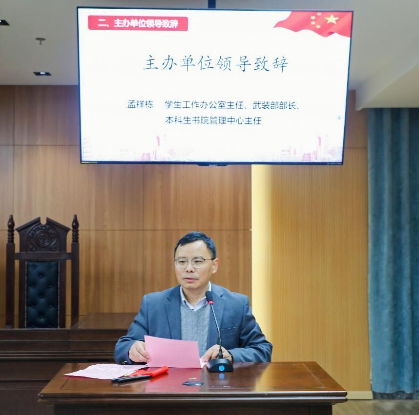 随后,学生工作办公室主任、武装部部长、本科生书院管理中心主任孟祥栋结合当前学校的工作介绍了举办法治文化节的重要意义,并对近年来德赢官网在法治宣传教育中所取得的成绩进行了阐述,表达了继续坚持协同办好法治文化节的坚定信心。