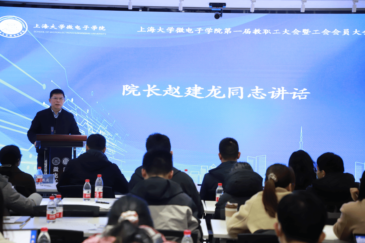 院长赵建龙讲话指出,非常荣幸加入微电子学院,微电子学院是一个承载国家战略使命的学院,每位教职工都承担着解决集成电路关键核心技术攻坚的使命。希望学院全体教职工牢记国之大者,深入思考在集成电路核心技术攻坚中能做什么,应该做什么,并脚踏实地付之实践。他表示,愿意与学院全体教职工携手并进,共创学院发展新篇章,努力交出满意的答卷。