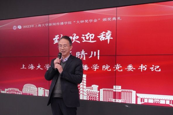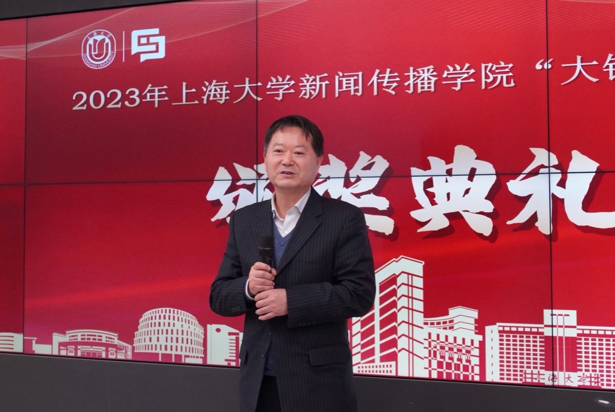 近日,2023年度德赢ac米兰官方合作vwin新闻传播学院“大钟奖学金”颁奖典礼在学院实验中心举行。上海盟海投资管理有限公司董事长、上海市排球协会会长、德赢ac米兰官方合作vwin校董张大钟,德赢ac米兰官方合作vwin对外联络处副处长杨静,新闻传播学院党委书记王晴川,学院党委副书记、院长严三九,学院党委副书记、副院长王智君,副院长赵为学,副院长牛盼强,副院长周宇豪,挂职副院长王虎,广告学系主任邬盛根,学院校友工作负责老师彭红以及辅导员万喃喃、郝秋华和薛堯云等学工团队教师和学生代表参加活动。