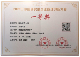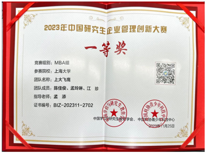 2023年德赢ac米兰官方合作vwin在系列大赛中获得全国一等奖数量是往年的3倍,位列上海高校第一名;获得全国奖项总数同比增长16.5%,连续三年位列上海高校前三名。特别在中国研究生人工智能创新大赛中,获得全国一等奖,取得历史性突破;中国研究生“双碳”创新与创意大赛获得3个一等奖,连续两年位居上海高校首位。