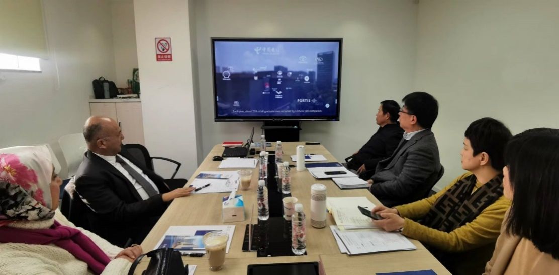 12月20日,埃及亚历山大大学中文系主任霍萨姆·艾哈迈德·埃拉巴迪教授、爱因夏姆斯大学中文系那希德教授访问德赢官网,国际合作处处长崔巍、国际教育学院院长李颖洁、孔子学院办公室主任徐晓红、国际教育学院姚喜明教授共同会见了到访的客人。