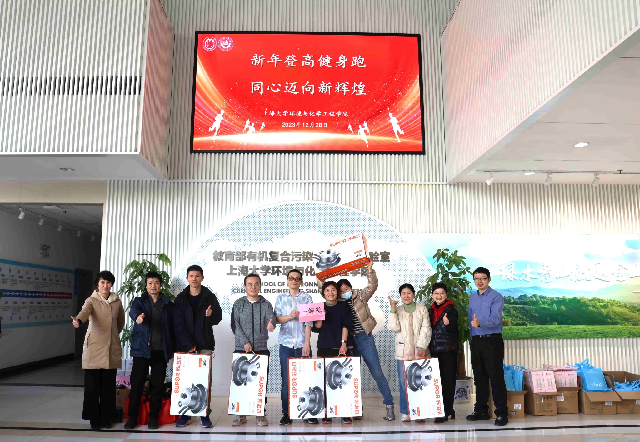 为迎接2024年元旦佳节,营造喜庆热烈、文明祥和、健康和谐的节日氛围,提高师生健身意识,12月28日下午,环化学院“2024迎新登高健身跑”活动在宝山校区东区火热举行。本次活动以“新年登高健身跑,同心迈向新辉煌”为主题,全院约70余名教职工积极参与,学院党委书记钱冬英、常务副院长王勇等领导班子成员出席活动。活动由学院工会主席朱惠娟主持。