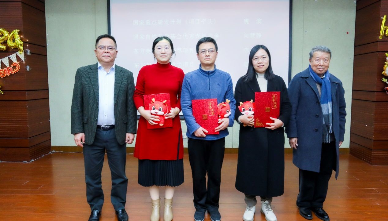 第二批表彰了国家自然科学基金专项项目魏滨,国家重点研发计划(课题负责)祁巍巍,东方英才计划青年项目冯炜、王丽君,上海市科委启明星计划李进,上海市科委浦江人才王长楠,上海市教委晨光计划陈良。由老院长李根喜、党委书记陈付学、执行院长肖俊杰为他们颁奖。