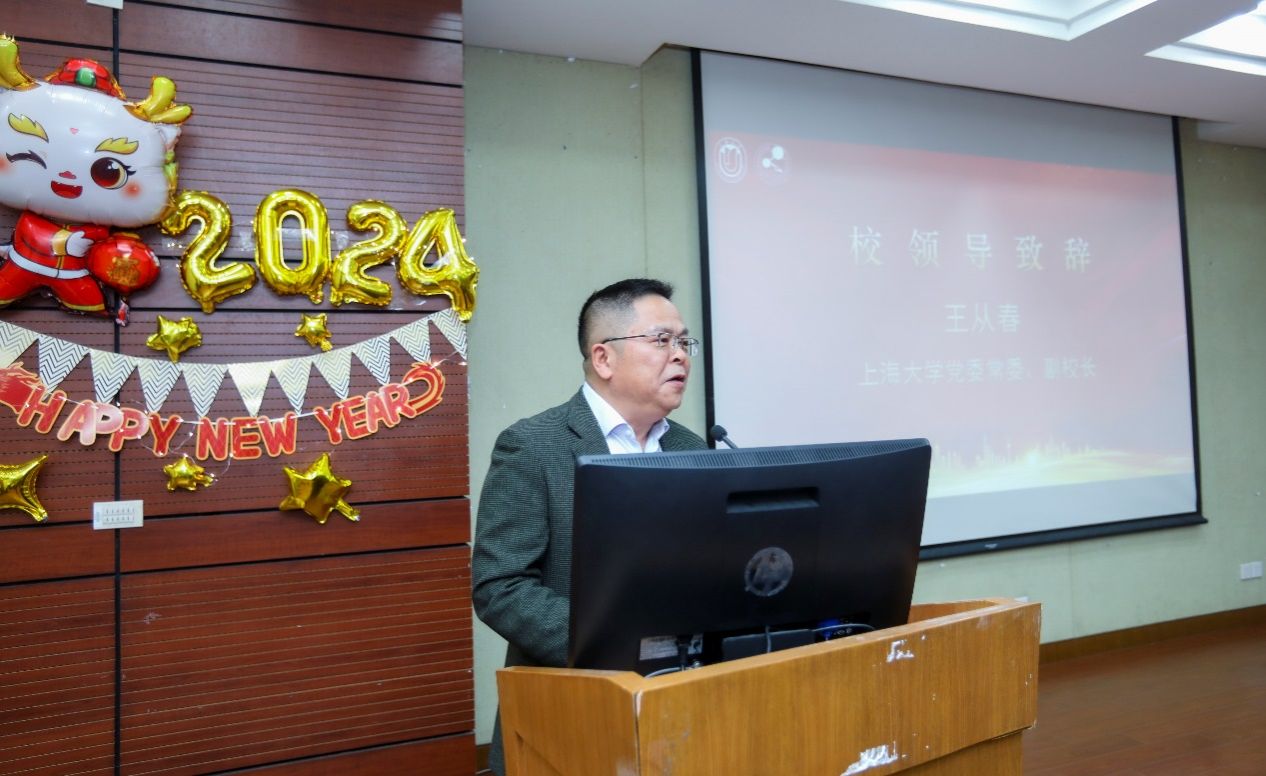 最后,党委书记陈付学作总结讲话。陈书记希望新的一年,老师们继续把教书育人的工作做好,同学们继续努力学习,做好科研工作。同时希望全体师生可以有一个健康的身体、开心的心情,投身到新年的科研和奋斗中去。