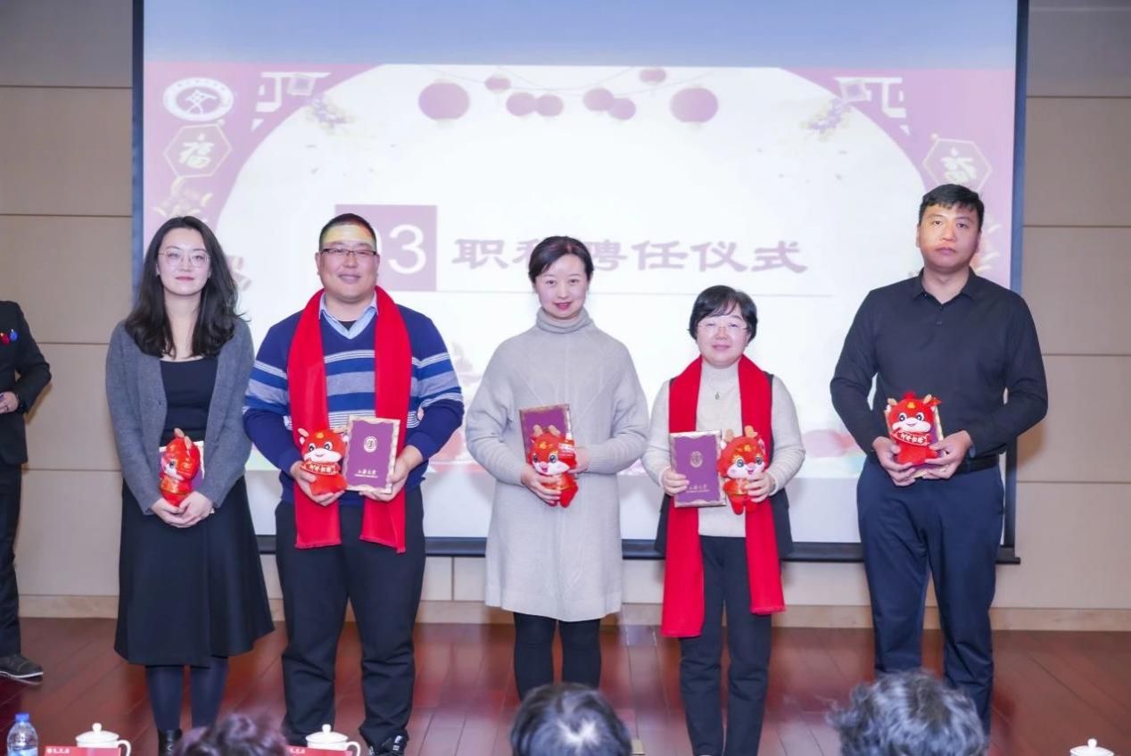 在职称聘任环节,文学院副院长宁镇疆分别为副教授宋鸽、谢尚发、刘慧宽,教授倪兰、石娟颁发聘书,并对以上老师晋升副教授、教授表示祝贺。