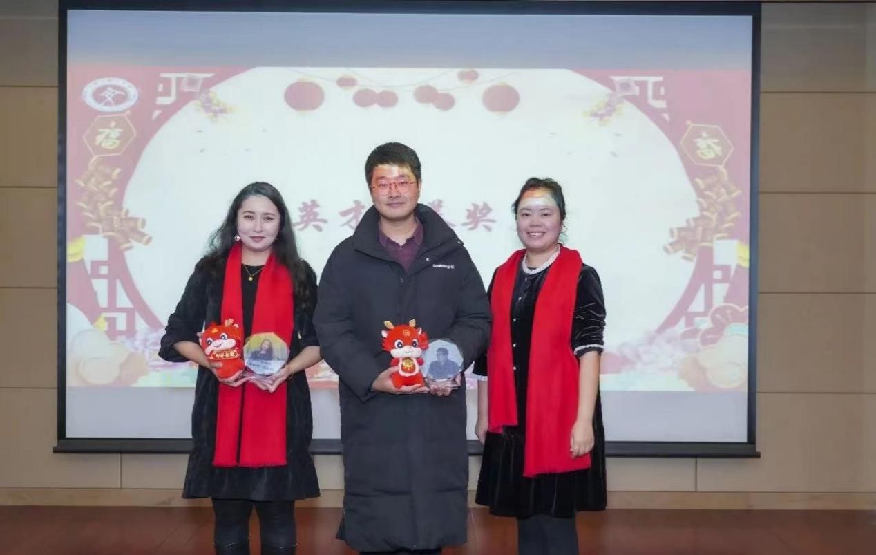 在优秀表彰环节,学院分别为2022年和2023年获奖教师颁奖,颁奖嘉宾由院系领导和上一届奖项得主组成。姚蓉教授为获得教学贡献奖的团队和个人颁奖;文学院副院长宁镇疆为学术贡献奖获得者颁奖;文学院党委副书记、副院长丁佳蒙为英才培养奖获得者颁奖;文学院副院长倪兰为文化使者奖获得者颁奖;段似膺老师为最佳新人奖获得者颁奖;中文系和历史学系主任张永禄、郭丹彤为服务奉献奖获得者颁奖;刘蕊副教授为青年才俊奖获得者颁奖;王三义教授为突出贡献奖获奖者颁奖;廖大伟教授为年度特别奖获得者颁奖;获奖老师分别发表获奖感言并合影留念。