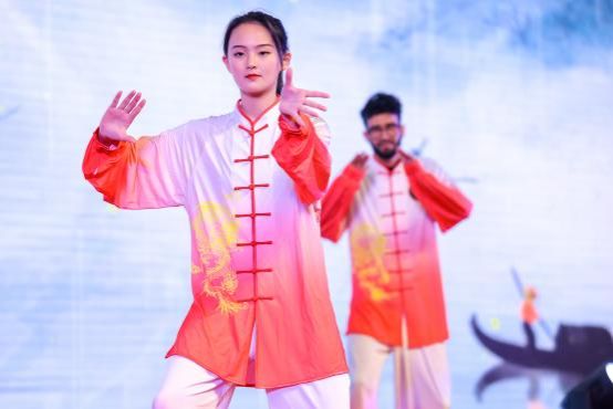 在武术的感染里,我们领悟精神。体育文化工作室太极拳俱乐部的学员现场带来《陈式太极拳》表演,展示中华武术瑰宝,尽显深厚文化底蕴;韩国留学生带来的《韩国跆拳道》表演充满韩国武术的热血与激情,又不乏青春与活力。
