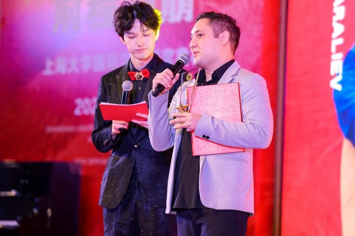 在颁奖采访环节,“文体之星”获得者,来自乌兹别克斯坦的管理学院22级硕士生OTABEK UMARALIEV(李硕)分享了他个人在音乐中成长的经历:从在校园里自弹自唱,到与好友组建乐团“Over Tune”,感受到的是“音乐使人放松,能给同学们带来快乐”。当成为国际学生“海翼”合唱团团长后,除了多了份责任,更重要的是“世界上有很多种语言,但音乐是大家共同的语言。通过音乐,把各个国家的同学团结在了一起;坚持训练不容易,但美妙的和声让人着迷”。他表示,感谢学校为他的兴趣插上了飞翔的翅膀,让他的小小爱好,最终有机会凝聚一个大大的团体。