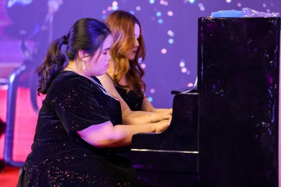在乐器的鸣奏中,我们无言沉醉。Audrey Keiko Wilona(印度尼西亚)与Wong Yi Xuen(马来西亚)带来的钢琴四手联弹《西班牙舞曲》轻快活泼,优雅美妙,两位演奏者默契十足;中外学生身着汉服,拨弦合奏古筝《青花瓷》,古韵十足,仿佛带人走进歌曲中的那段美好故事。