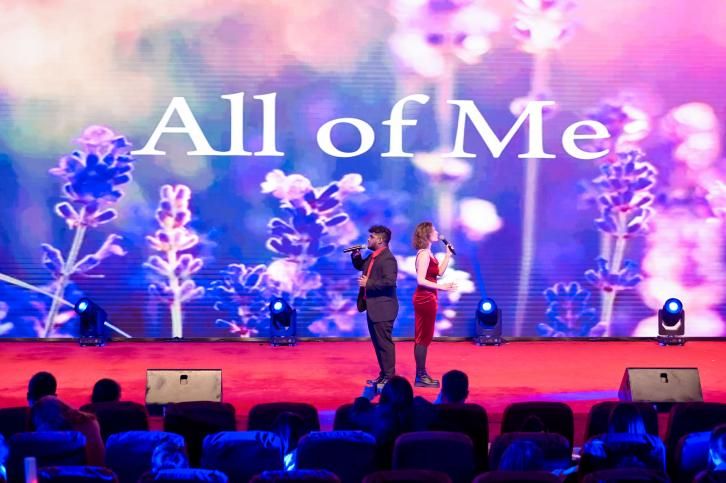 在音乐的世界中,我们用心聆听。《我只在乎你》的钢琴弹唱悠远情长,温柔至极;《you raise me up》的男女对唱,深情款款,美妙动人;“海翼”合唱团的合唱《月亮代表我的心》《you are the reason》展现了和声的美妙以及中外用不同的语言传递着相同的人类美好情感;《my heart will go on》的女声独唱让经典重现,现场共同沉醉;2023届校友孟清扬献上独唱《writing's on the wall》,用实力征服全场。