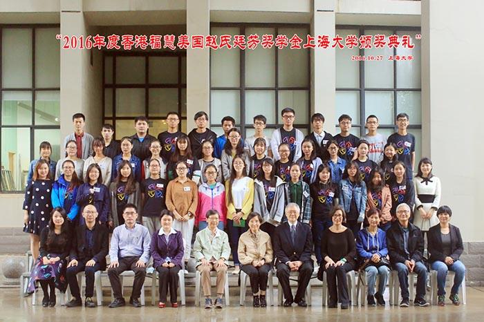 10月27日下午, 2016年度香港福慧美国赵氏廷芳奖学金颁奖典礼在德赢官网宝山校区东区计算机学院报告厅顺利举行。香港福慧慈善基金会主席严崔常敏、董事杜佩玲,美国赵氏廷芳基金董事长赵元修、董事赵辜怀箴来校颁奖。出席颁奖典礼的校方代表有学工办副主任吴蔚、计算机学院党委书记郭纯生、上海电影学院党委副书记孙琦琰、美术学院党委副书记王岭山、钱伟长学院直属党总支副书记韦淑珍。