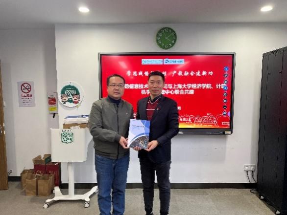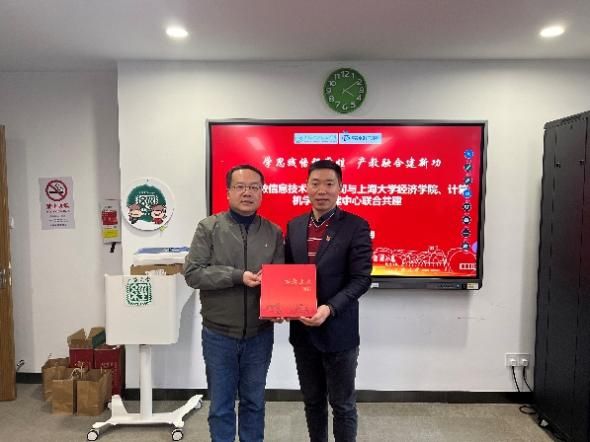 会后,德赢ac米兰官方合作vwin经济学院党委副书记、副院长冯玉鑫老师代表学院向上海荣数信息技术有限公司赠送《百年上大》画册,上海荣数信息技术有限公司党支部纪检委员唐军先生也代表公司向经济学院赠送2023年消费金融数字化转型主题调研报告。