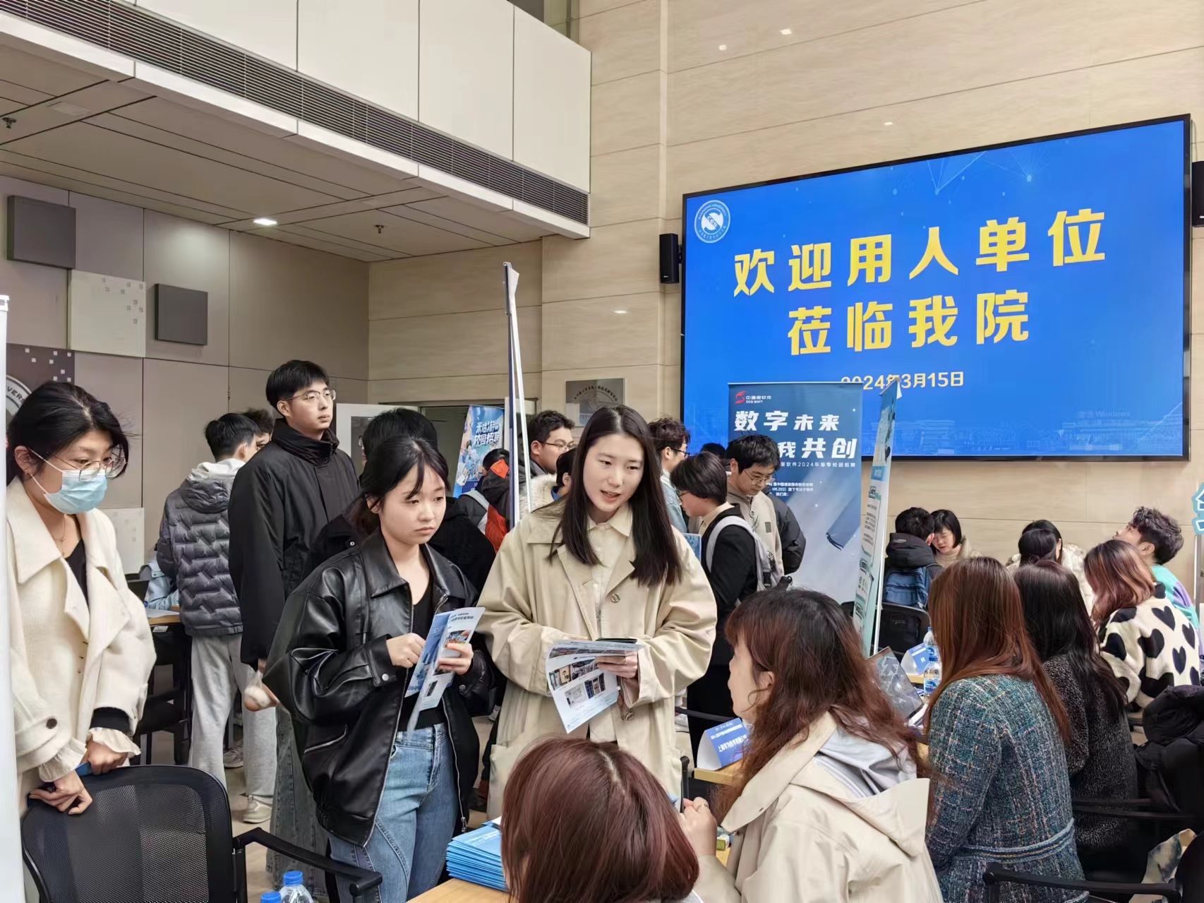本次春季招聘会聚焦国家重大需求和城市战略使命,邀请了来自信息技术、制造业、金融、教育等行业的34家用人单位参会,涵盖中国船舶集团有限公司第七〇四研究所、上海高性能集成电路设计中心等国家战略性企业,华为、字节跳动、携程、戴尔、交通银行、学而思等行业优秀企业,提供软件开发工程师、网络安全工程师、运维等电子信息类和职能类岗位100余个,吸引了多个学院各年级近400名学生前来咨询面试、投递简历。