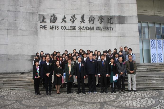 美术学院陈爱珍书记致欢迎词,中日交流展从1986年至今已成功举办25届,通过学生作品交流合作机制,两校之间建立了良好的学术交流平台,促进了两校之间的文化交融,建立了深厚的友谊,预祝祝愿本次展览圆满成功。随后双方领导举行了开幕剪彩仪式并与参展学生合影留念。