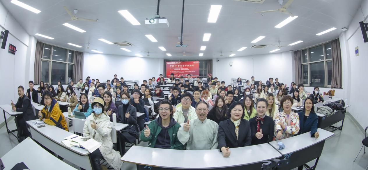 课堂上,李瑊教授和朱庆涛老先生默契配合,将传统的讲堂转化为妙趣横生的书场。他们凭借深厚的学术功底和丰富的教学经验,将党史知识与评话艺术完美结合。通过现场演绎陈独秀、李汉俊、陈望道、俞秀松、李达等人在渔阳里的活动轨迹和彼此交往等历史片段,展示出战斗的激情、温柔的爱情、革命的豪情,老师们情真意切的表演和深入浅出的讲解,带领同学们重温了一段岁月历程,使大家充分深入了解了一群有思想、有抱负、有担当的民族精英,为了国家安宁、民族复兴、人民幸福而积极奋斗、无私奉献的鲜活故事。