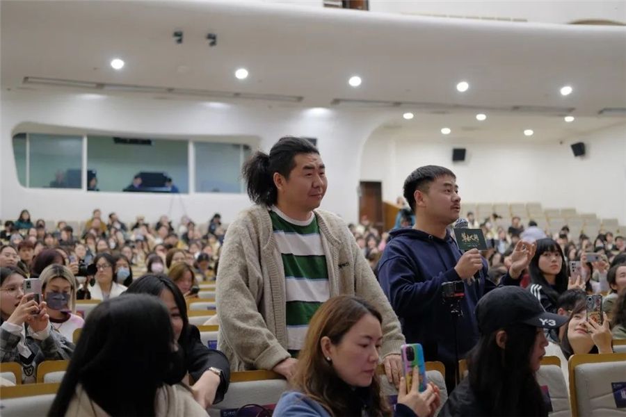 随后,电影主创们也留了许多时间给予在场的同学发言提问。其中,有同学向蒋勤勤老师提问到片尾的老虎有着什么样的意义、吴苔花是如何在内心做斗争于选择的。对此,蒋勤勤老师认为,“我当时看到这个剧本、看到这只老虎的时候,我看到了我自己。我觉得每个人心中都有一头野兽、一只猛虎,它可能代表着你的欲望、贪婪、仇恨、愤怒、甚至你的邪恶。所以当苔花看到那只老虎的时候,她仿佛看到了另一个她自己,是她自认为她建立起来的崭新、独立的自我,但是这个自我建立的过程是因为她误入了传销组织,是虚构的,那个自我只是她想象出的强大。所以那一刻她在和自己作斗争,和坏的、恶的不好的我做一个决裂。”