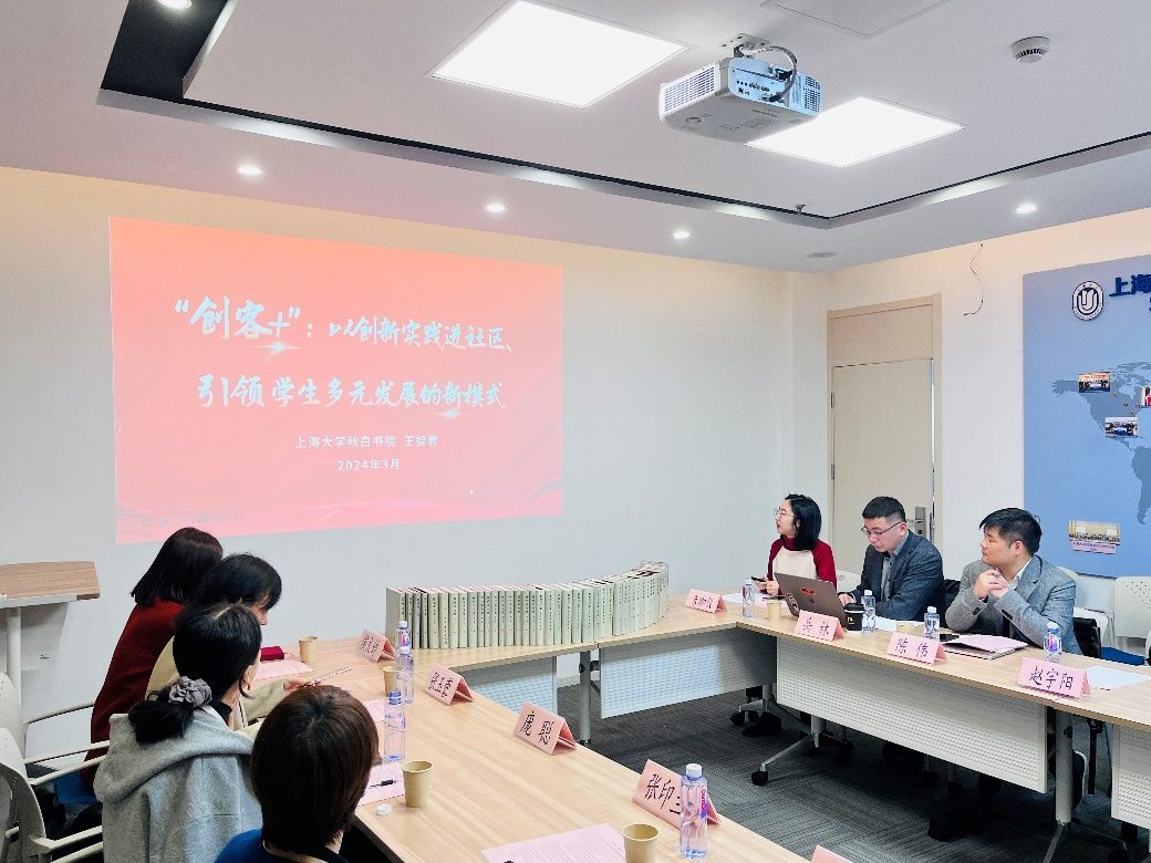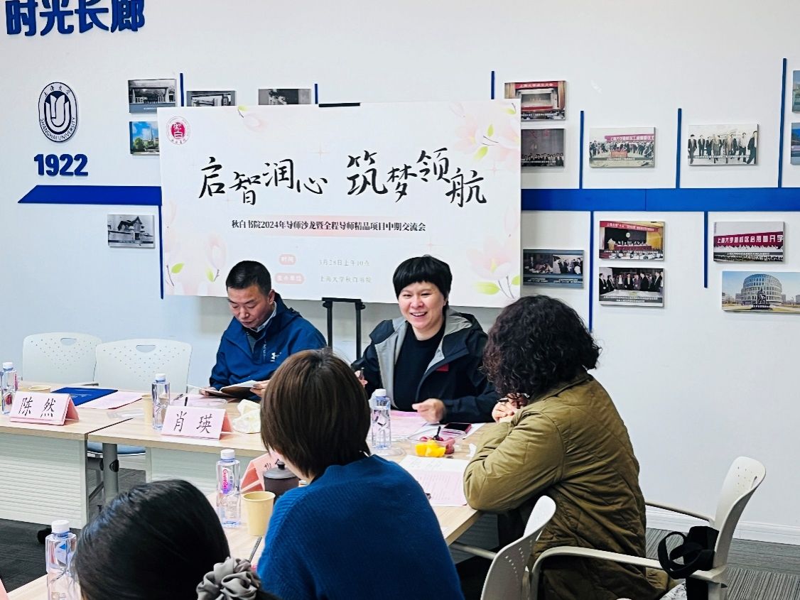 在本科生全程导师代表进书院精品项目中期汇报交流环节中,全程导师们围绕自身导师项目展开深入交流。对外联络处陈然以《溯源百年·传诵青春——老上大校友后人寻访系列活动》为题,回顾校史、展望未来,指出百年上大红色学府的历史需要上大人赓续传承,传播红色校史,需要把握历史脉络,搭建多方平台、创新宣传形式,这样百年校史才能更好地在新时代被铭记,散发新的活力。社会学院陈伟以《用脚步丈量魔都:人文体验与社会调查并举的育人实践》为题,展示他和学生一起通过“city walk”的新潮方式开展更“接地气”的社会实践的经验。党委宣传部韩晓霞以《促进导学和谐互动,构建育人共同体——红色文化育人模式进书院的探索实践》为题,深入分析了大一新生对于德赢ac米兰官方合作vwin红色根脉的了解现状。招就处侯文婷以《就业背景下生涯教育融入书院人才培养的实践探索》为题,分享了基于学生专业进行的职场探索经验,力在提升学生的专业感知度、价值认同度和职场适配度。法学院岳林以《法律与科幻文学读书会》为题,探讨办好书院读书会不仅需要前期充足的阅读准备与宣传,更重要的是适当运用激励机制鼓励积极参与者,同时也要根据读后总结和成员反馈情况,适时调整阅读策略和计划安排。社会学院赵宇阳以《润心育心、向阳而生》为题,分享了自己以“改变偏见、提升个人心理健康状况、增强个人抗压能力和解决问题的能力”为核心开展的多样化活动。新闻传播学院朱珈仪以《创客+:打造社区创新实践育人新空间》为题,分享了提升学生科创能力的实践育人经验。