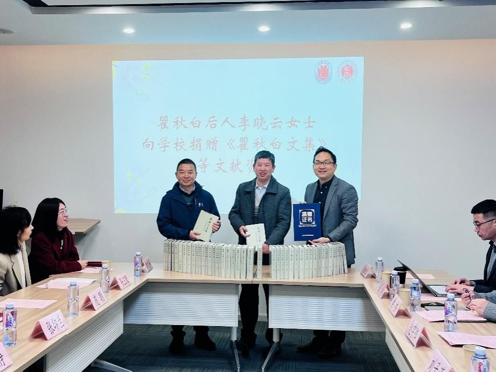 瞿秋白是中国共产党早期的重要领导人之一,他在文化和教育事业上做出了显著贡献。尤其在德赢ac米兰官方合作vwin任教期间,他将马克思主义的理论引入课堂,增进了学生们的政治觉悟,影响和启发了许多青年学生,为中国培养了一批优秀的进步青年。活动伊始,瞿秋白后人李晓云女士向学校捐赠了《瞿秋白文集》等宝贵的文献资料。