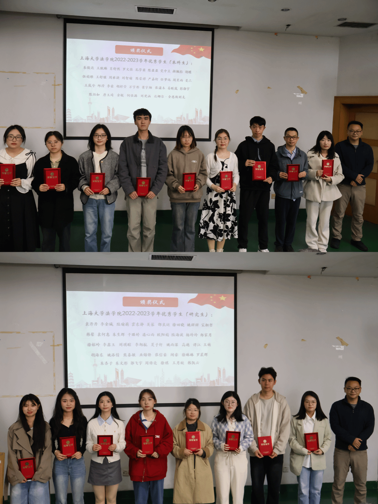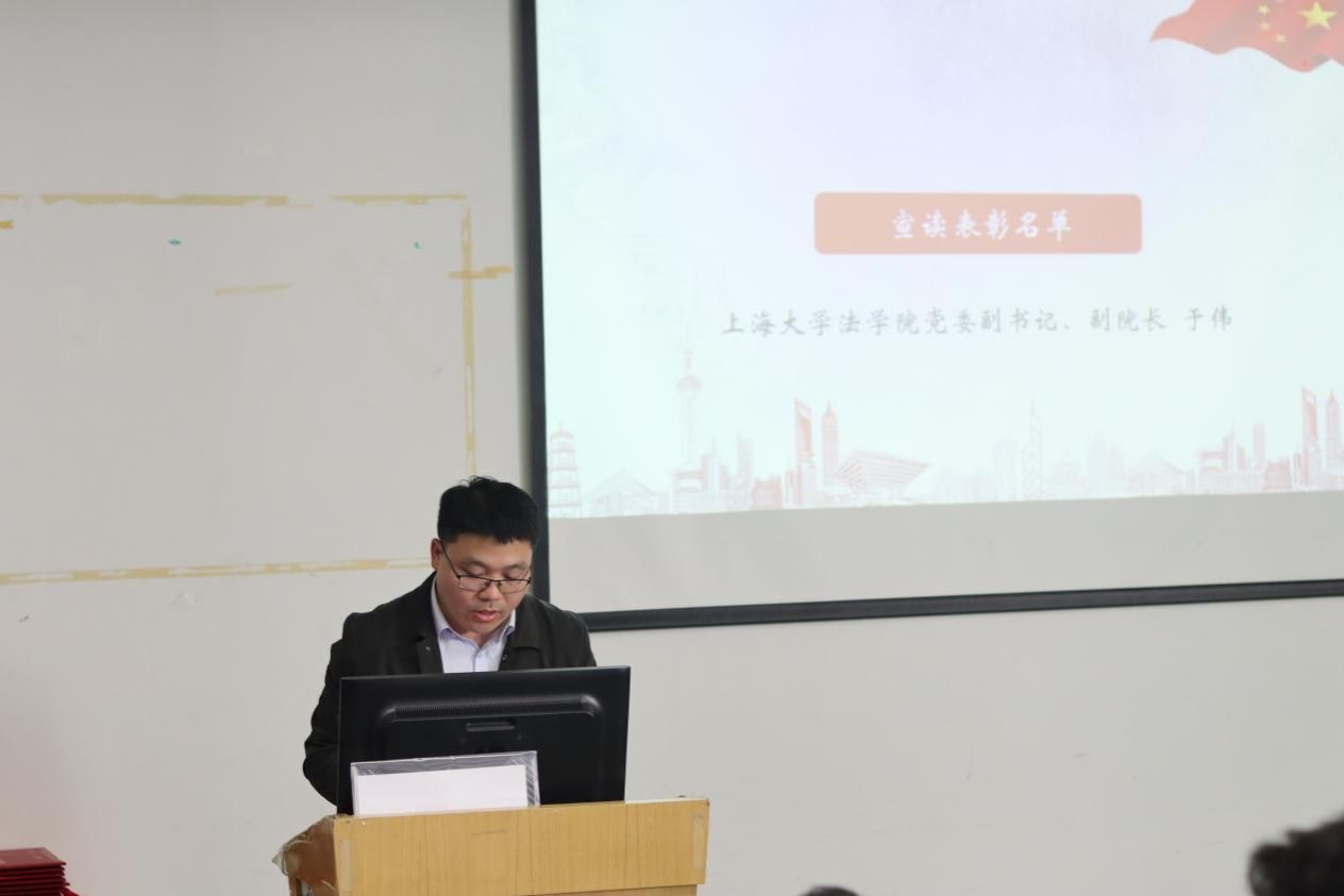 随后,法学院于伟老师宣读《德赢ac米兰官方合作vwin法学院2022-2023学年优秀学生个人和集体获奖名单》,代表学院对获奖的学生个人和集体表示热烈祝贺,并希望全体法学院学生能向先进模范学习。