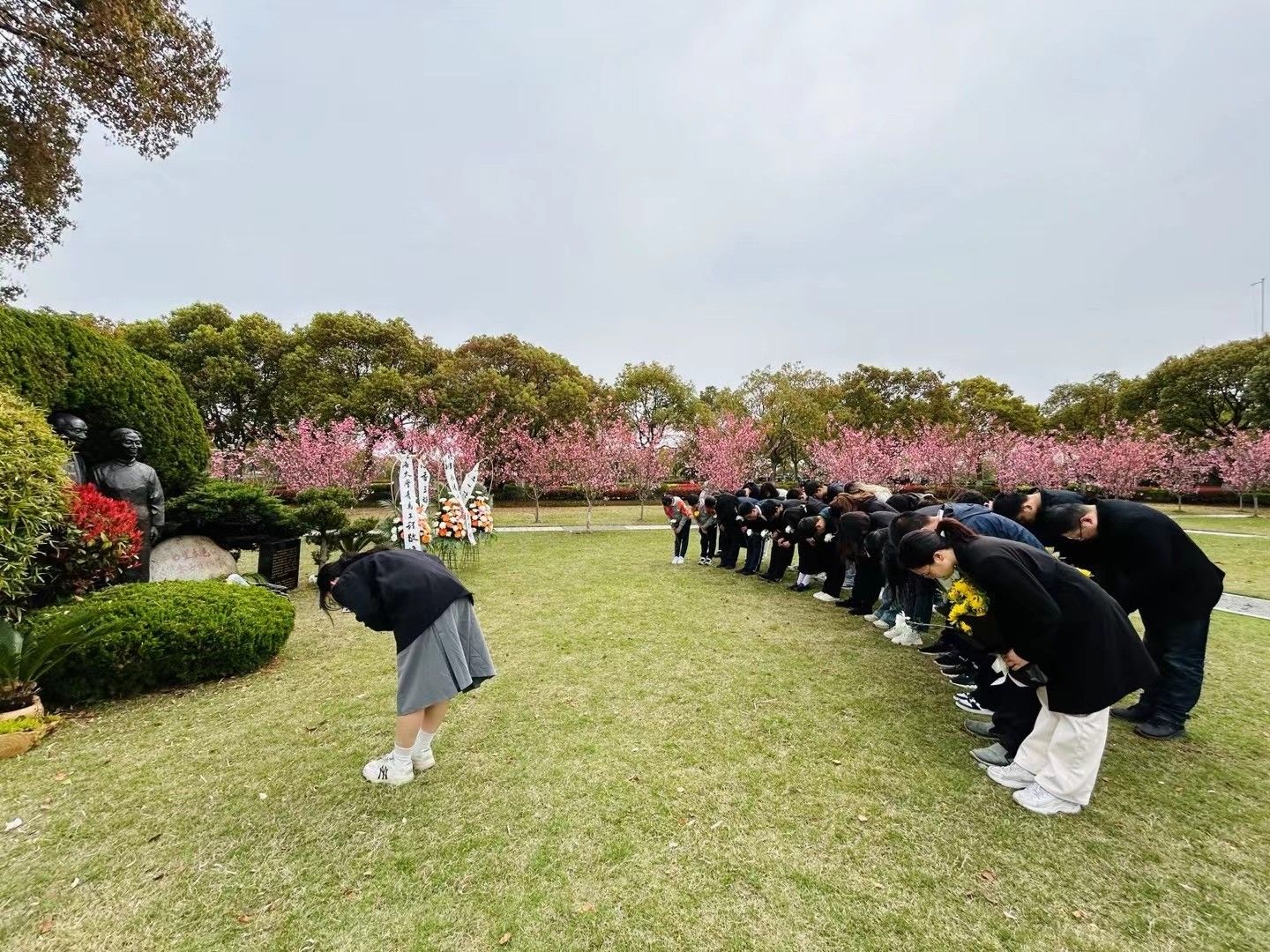 4月2日上午,于清明节前夕,钱伟长学院和基础教育处等单位师生共赴奉贤滨海古园,祭扫缅怀钱伟长老校长。钱伟长学院党委书记冯凌燕,党委副书记、副院长沈青松,德赢ac米兰官方合作vwin附属小学大队辅导员徐旖旎,上大附中老师陈泓婷以及钱伟长学院、材料基因工程组研究院、上大附中和上大附小师生代表、钱伟长教育思想学生宣讲团成员等一行近30人参加了缅怀仪式。缅怀仪式由钱伟长学院2020级本科生、学生党员袁可歆同学主持。