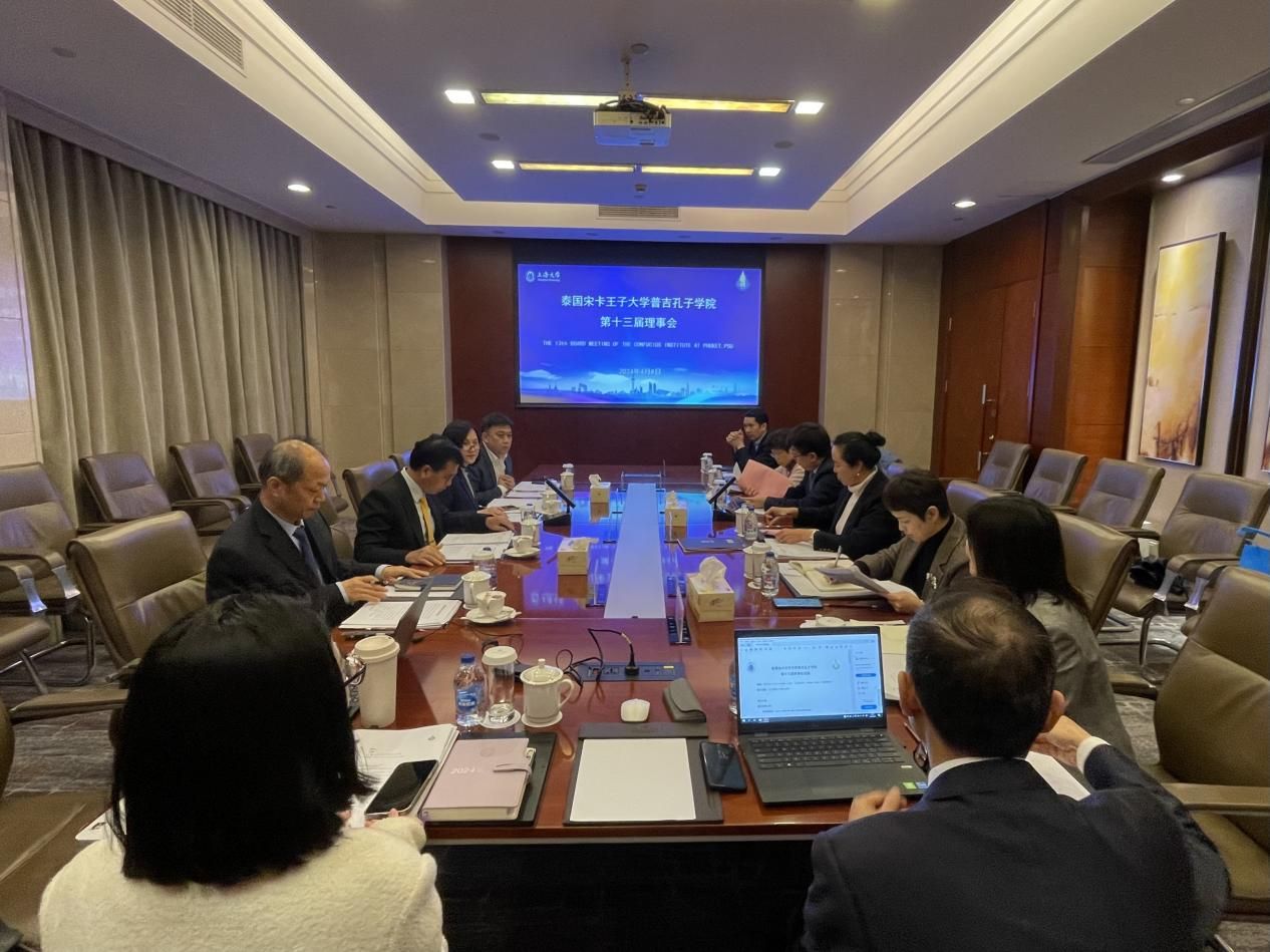 4月8日,泰国宋卡王子大学普吉孔子学院第十三届理事会在德赢ac米兰官方合作vwin顺利召开。德赢ac米兰官方合作vwin副校长、普吉孔院理事会中方理事长于雪梅,宋卡王子大学副校长、普吉孔子学院理事会泰方理事长林朋(Dr. Pun Thongchumnum)共同出席了本次会议,会议由孔子学院办公室主任徐晓红主持。