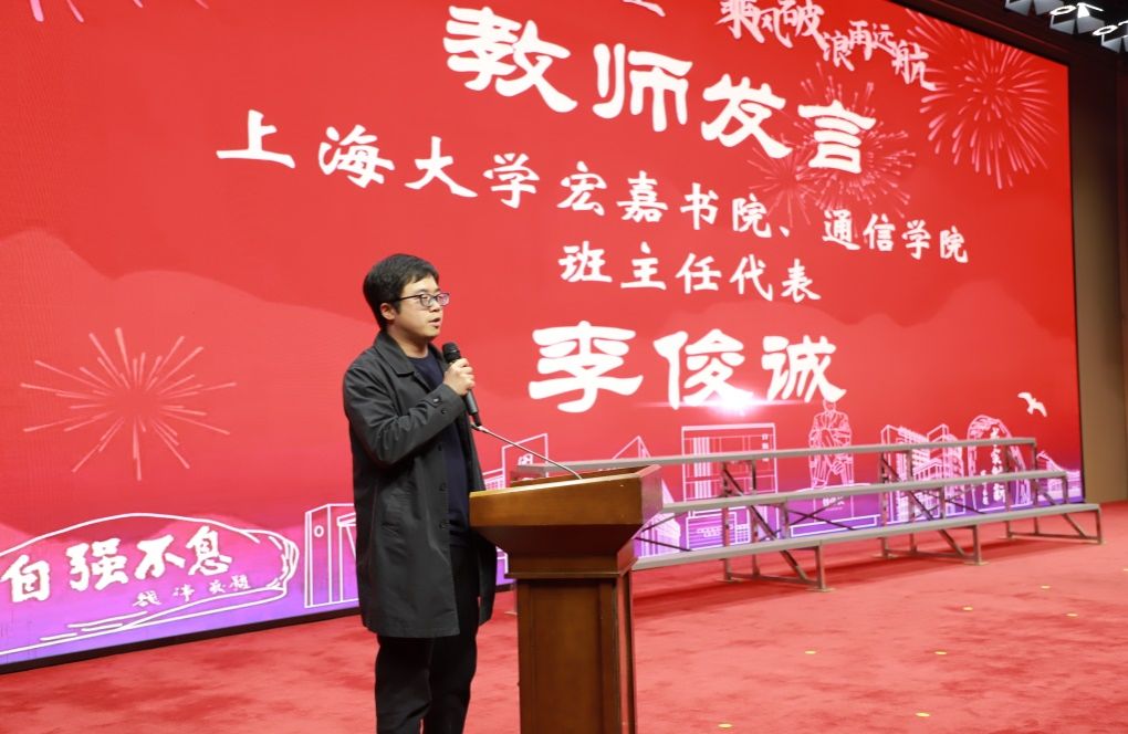 德赢ac米兰官方合作vwin宏嘉书院、通信学院教师李俊诚作为班主任代表发言,他希望学子们珍惜青春,把握机遇,在人工智能引领社会发展的时代,养好学习习惯,巩固专业基础,以专业本领服务国家发展,勇担时代担当。