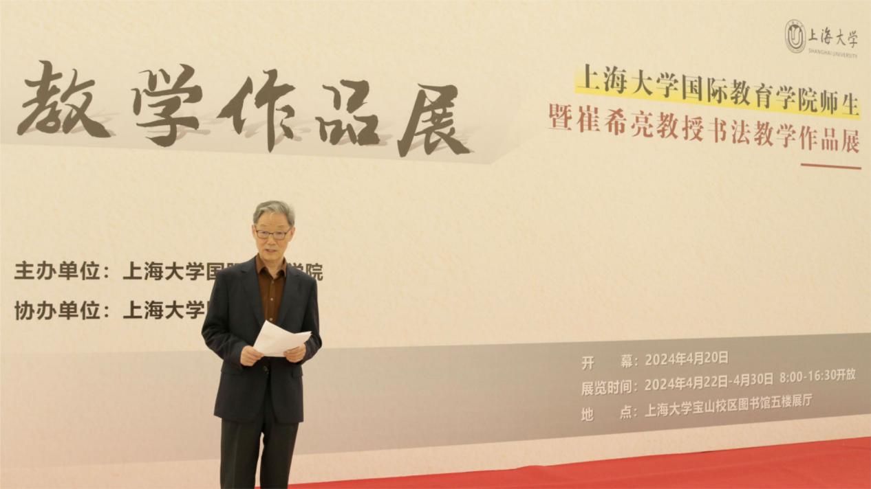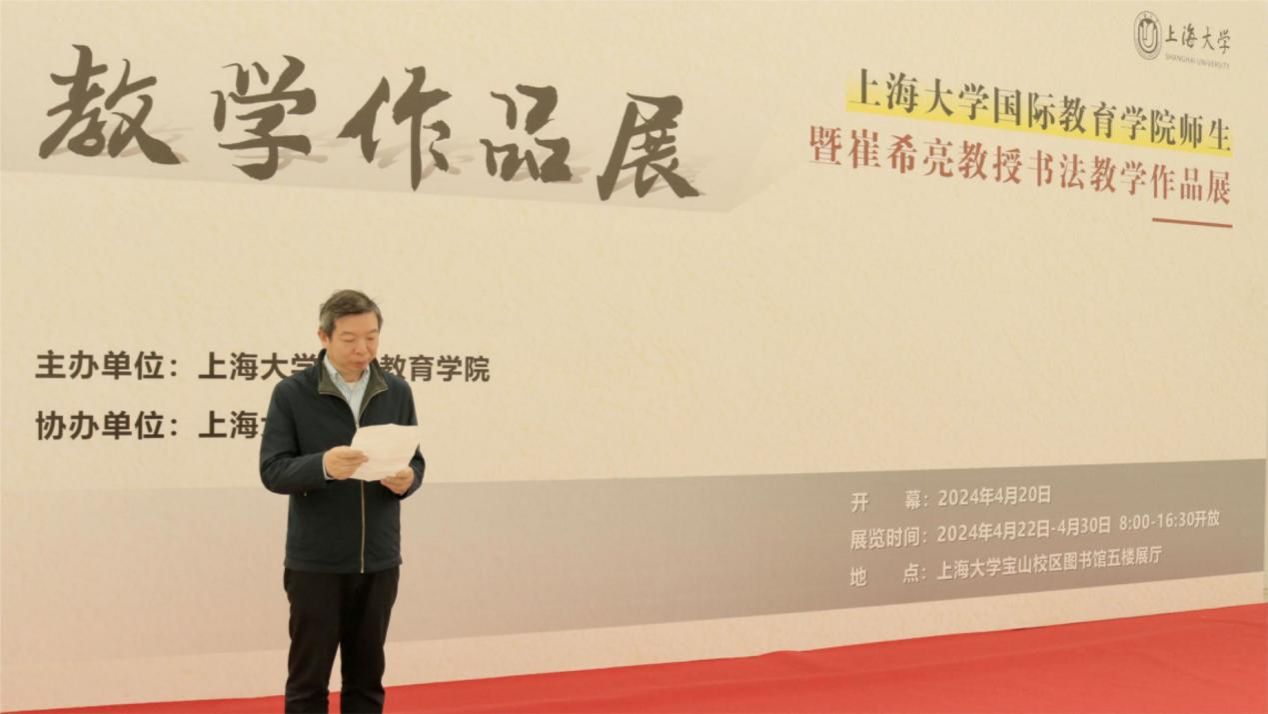 2024年4月20日上午十点,由国际教育学院主办的“德赢ac米兰官方合作vwin国际教育学院师生暨崔希亮教授书法教学作品展”在德赢ac米兰官方合作vwin图书馆五楼展厅顺利开幕。德赢ac米兰官方合作vwin党委常委、宣传部部长曾军,中国书法国际传播研究院院长、全国教育书画协会顾问、北京语言大学原校长崔希亮,上海交通大学人文学院教授王珏,德赢ac米兰官方合作vwin国际部党委书记王丽娜,德赢ac米兰官方合作vwin外国语学院党委副书记、院长尚新,外国语学院党委副书记、副院长贾小琴,外国语学院副院长阚怀未,外国语学院教授赵彦春,德赢ac米兰官方合作vwin工会原常务副主席姜继平,国际部党委副书记、国际教育学院副院长陈秀猛,国际教育学院副院长裴雨来,校内外多家单位师生代表出席此次开幕式。开幕式由国际部党委书记王丽娜主持。