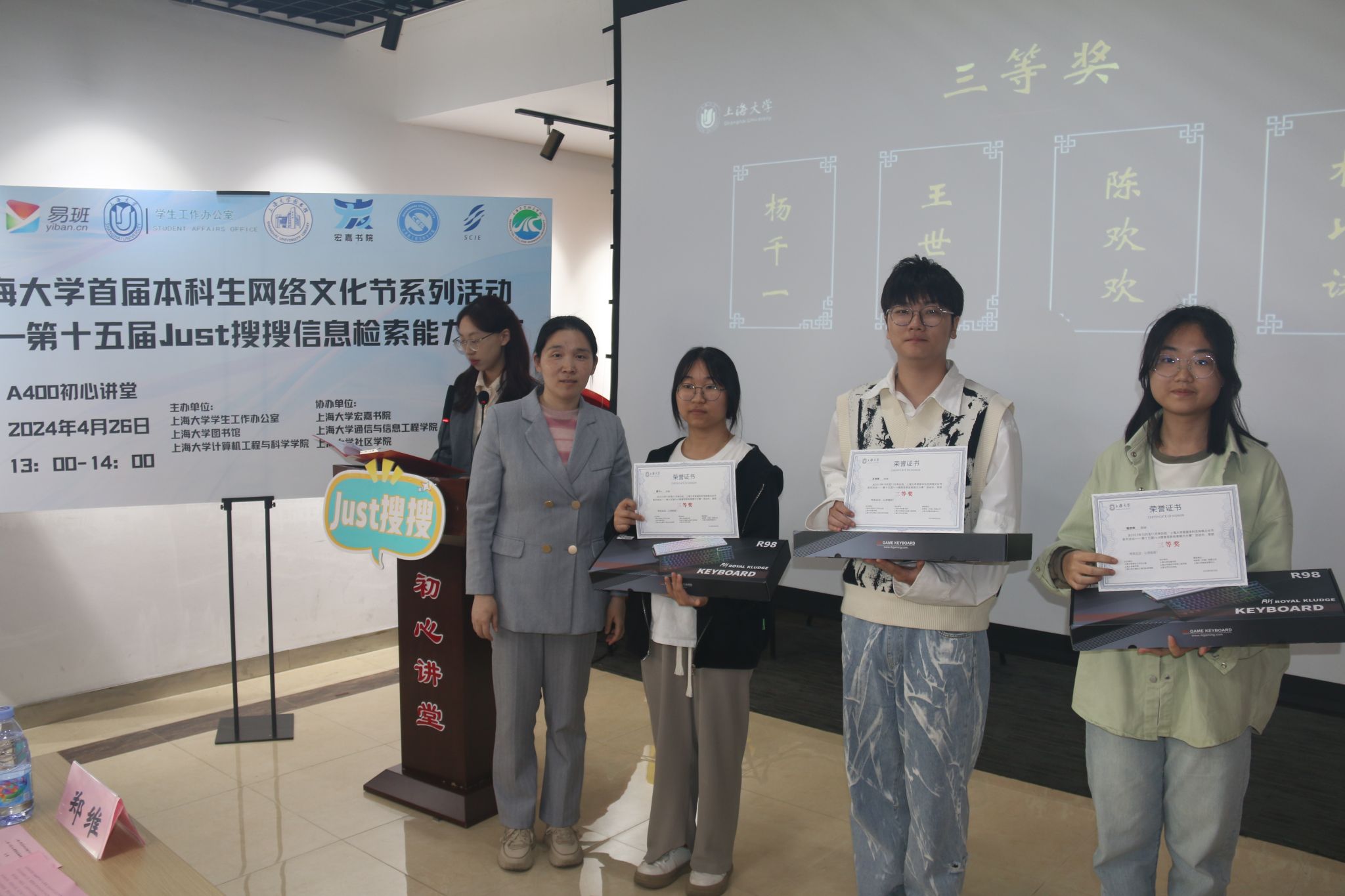 德赢ac米兰官方合作vwin首届本科生网络文化节系列活动——第15届Just搜搜信息检索能力大赛顺利举办。本届活动由埃森哲(中国)有限公司、德赢ac米兰官方合作vwin易班发展中心赞助,校学生工作办公室、校图书馆、计算机工程与科学学院主办,宏嘉书院、通信与信息工程学院、社区学院协办,面向全校本研同学开展。大赛历经赛前宣传、线上选拔、线下比赛、闭幕式等环节,现圆满闭幕。