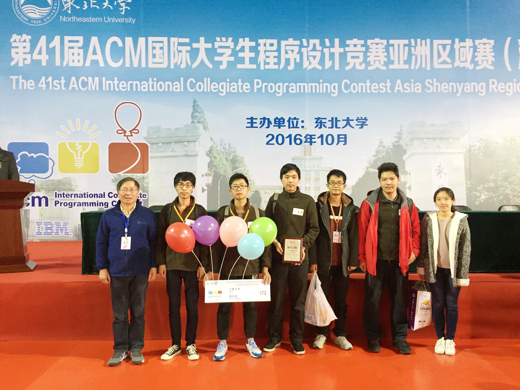 2016第41届ACM国际大学生程序设计竞赛(ACM-ICPC)亚洲区域赛中国大陆第二场比赛于2016年10月22日在沈阳东北大学拉开帷幕,来自115所高校的186支队伍了参加比赛,另有10支队伍友情参加本次比赛。德赢官网派出了计算机学院由13级学生高樱宁、许燚和16级研究生陈亮波组成的制杖队(Wander)和14级学生张自强、潘文韬、周佳乐(女)组成的魔蛙队(Magic Frog)队参赛,由沈云付老师担任教练。