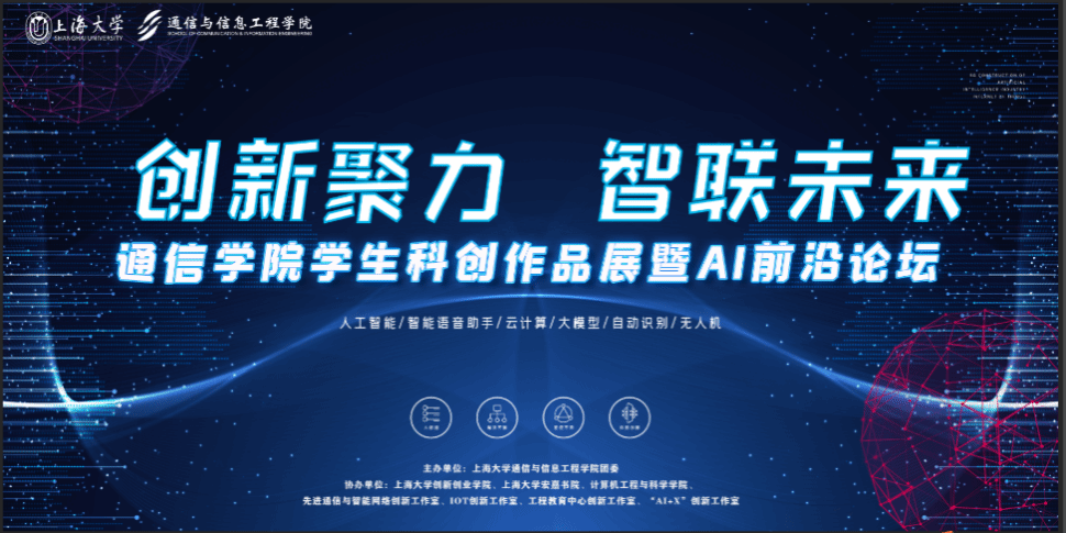 为纪念德赢ac米兰官方合作vwin建校102周年庆祝德赢ac米兰官方合作vwin新合并组建30周年,5月10日,德赢ac米兰官方合作vwin通信与信息工程学院团委携手德赢ac米兰官方合作vwin创新创业学院、宏嘉书院、计算机工程与科学学院、通信与信息工程学院研究生会、宏嘉书院“领航”职业生涯教育工作室,以及先进通信与智能网络创新工作室、IOT创新工作室、工程教育中心创新工作室、“AI+X”创新工作室等多方力量,在翔英大楼举办了“创新聚力·智联未来——通信学院学生科创作品展暨AI前沿论坛”。