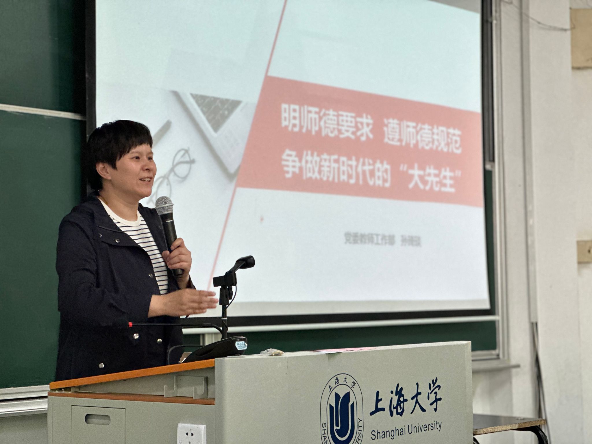 孙琦琰从新时代赋予新使命、新时代提出新要求、新时代做出新规范、新时代呼唤新作为四个方面讲述了开展师德教育的历史背景与现实要求,结合鲜活案例对《新时代高校教师职业行为十项准则》进行了分析解读与警示教育,严肃教师在课堂教学、关爱学生、师生关系、学术研究、社会活动等方面的纪律要求,引导广大教师时刻自重、自省、自警、自励,坚守师德底线,争做新时代的“大先生”。