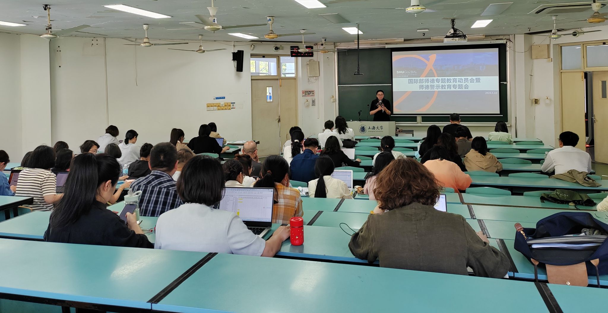 为引导广大教师坚定理想信念、厚植红色基因、涵养高尚师德,国际部于5月10日召开师德专题教育动员会暨师德警示教育专题会。会议邀请校党委教师工作部副部长孙琦琰做《明师德要求 遵师德规范 争做新时代的“大先生”》的专题讲座,国际部全体教职工参会,国际教育学院副院长张新玲主持会议。